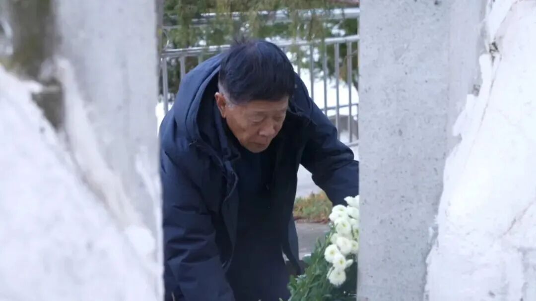 3月26日清晨,一夜未眠的郭建民在儿子和五莲县退役军人事务局工作人员的陪同下,走进云南省迪庆藏族自治州德钦县革命烈士陵园。走到烈士郭公存的墓碑前,老人慢慢蹲下,轻轻抚摸碑上的名字,眼泪夺眶而出。他跪在墓前泣不成声,在场所有人无不动容。