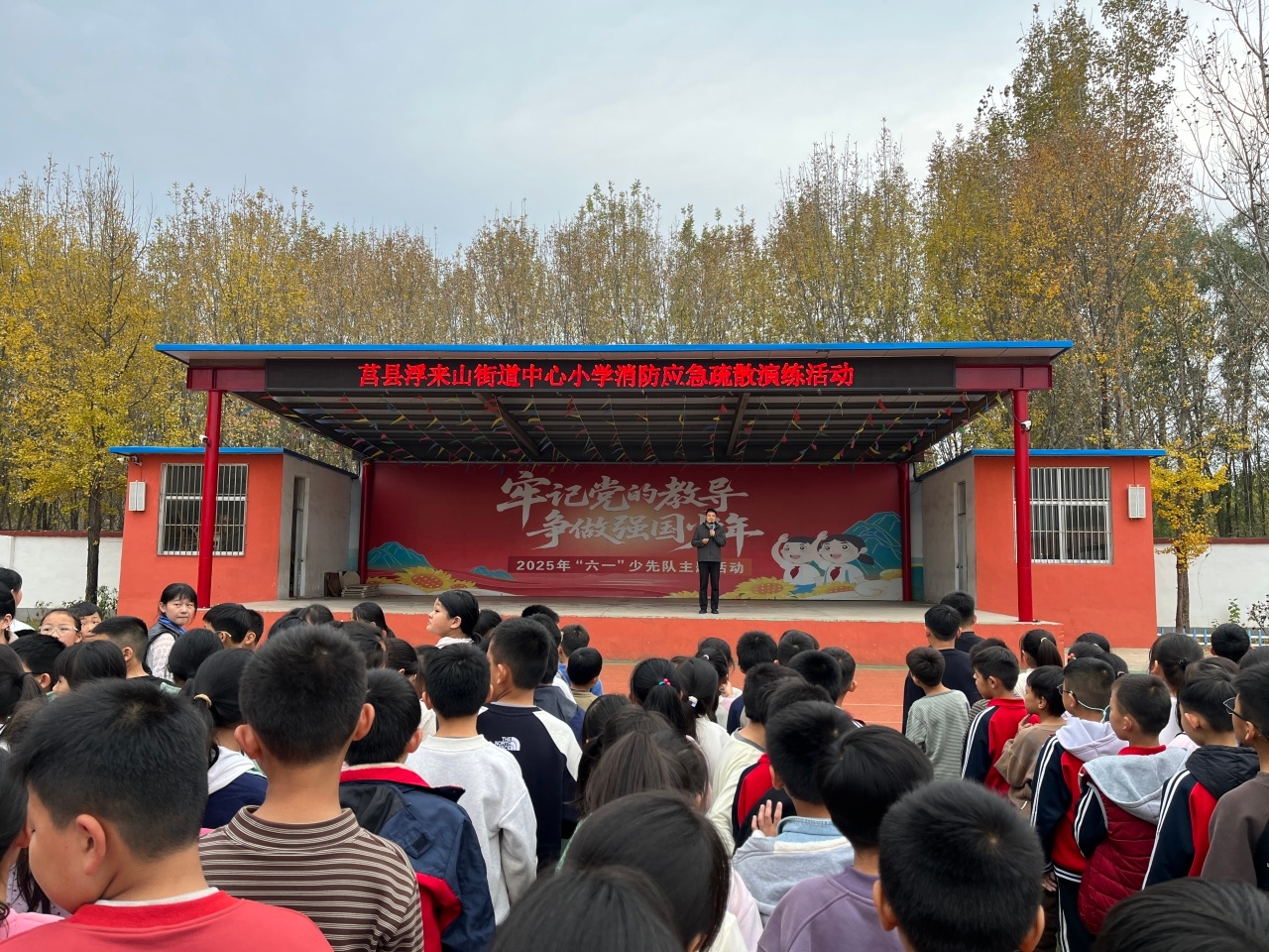莒县浮来山街道中心小学开展消防疏散演练活动