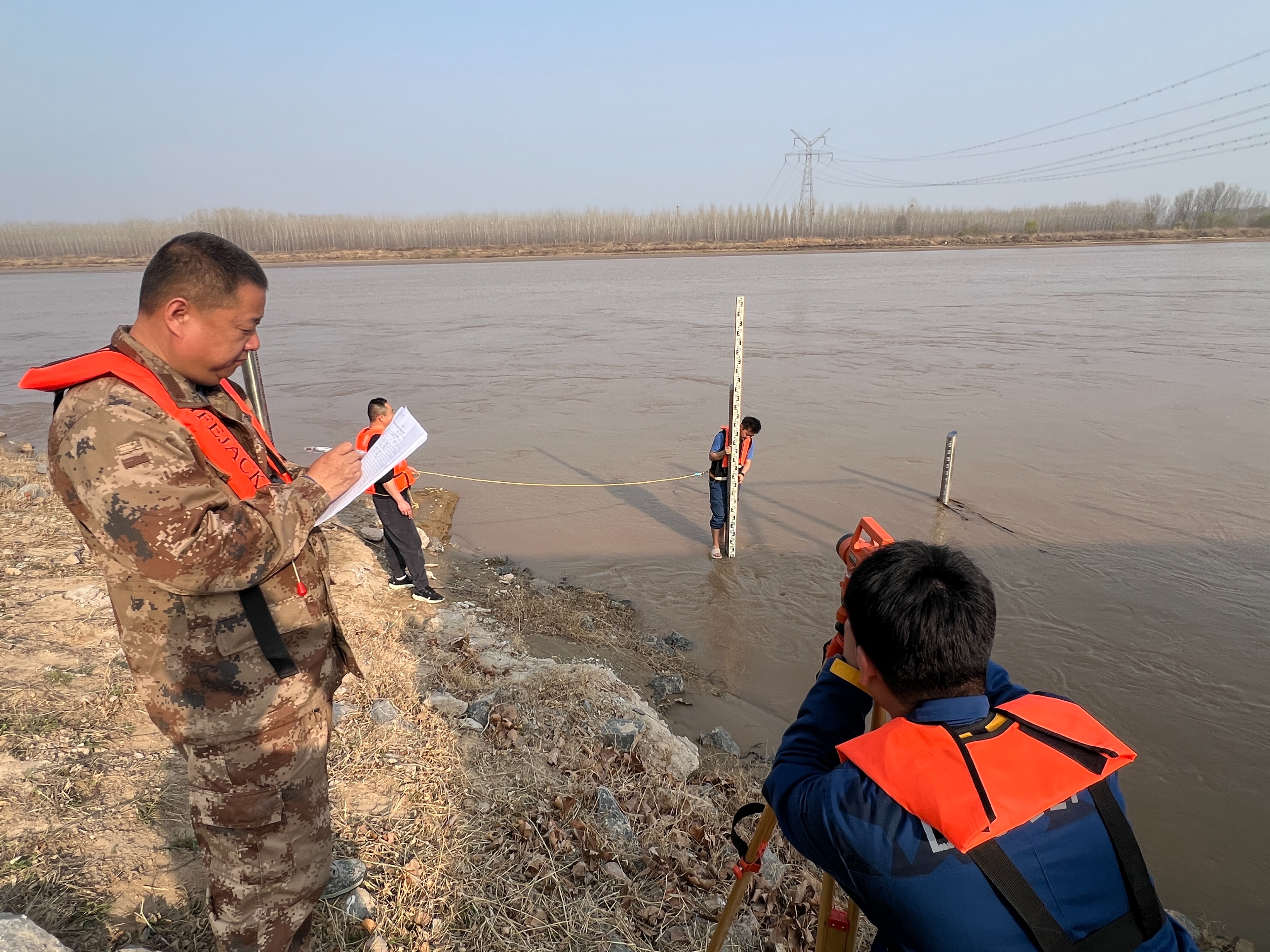 为夯实汛期水情监测基础,近日,利津黄河河务局宫家管理段组织职工,对辖内水尺开展全面校测工作。