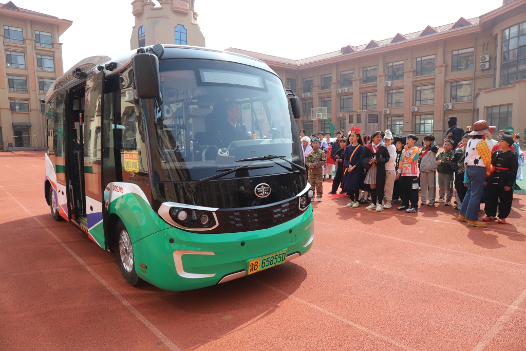 曲超介绍,该校践行“知行合一”的教育理念,每个月都会开展行知课程,这次“宝宝巴士”开进校园,也是一堂生动的行知课堂,有助于学生们从小树立环保意识,争做绿色出行的小使者。