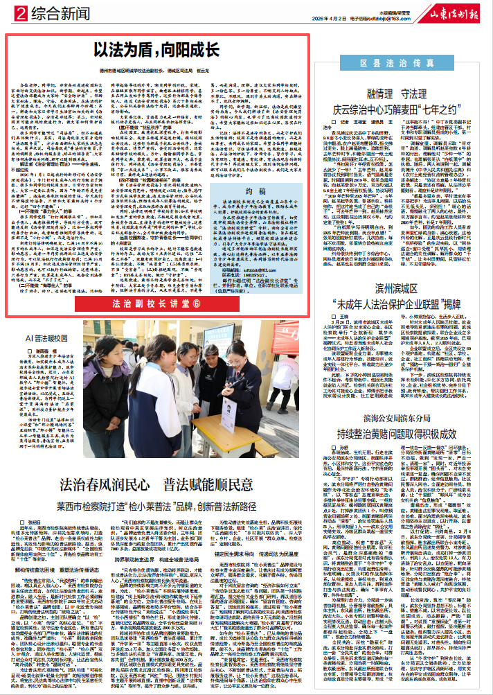 (作者为德州市德城区明诚学校法治副校长、德城区司法局崔云龙)
