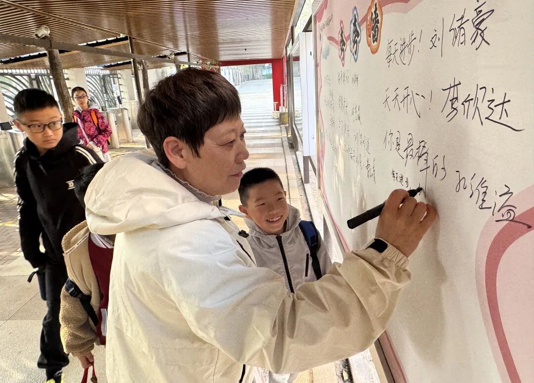 活动尾声,家长们驻足“夸夸墙”,提笔写下对孩子的鼓励、对学校的认可以及对家校共育的期许。一句句真挚话语,既传递着浓浓的亲情与信任,也凝聚起家校同心、携手育人的强大合力,为开放月首日活动画上圆满句号。