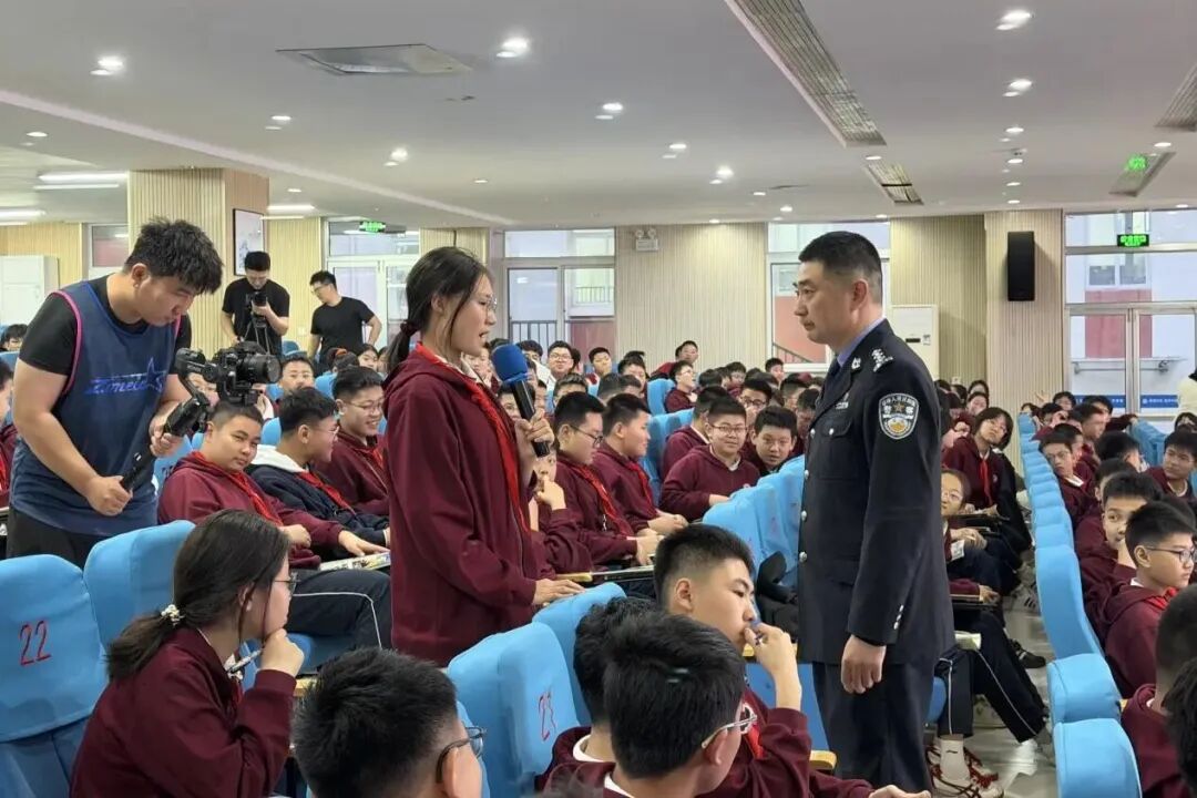 王东伟以“抵制校园欺凌和预防青少年犯罪”为主题,结合鲜活的真实案例,以案说法、以案示警,用幽默生动的语言,沉浸代入式的情境,为学生们解剖真实案例,开展普法宣传,并通过现场的互动交流,调动学生们知法、守法、懂法、学法的热情。深刻的教训、丰富的讲析、生动的还原,让学生们深感丧失自由之痛、蔑视法律之代价,法治教育潜移默化沁润心田。