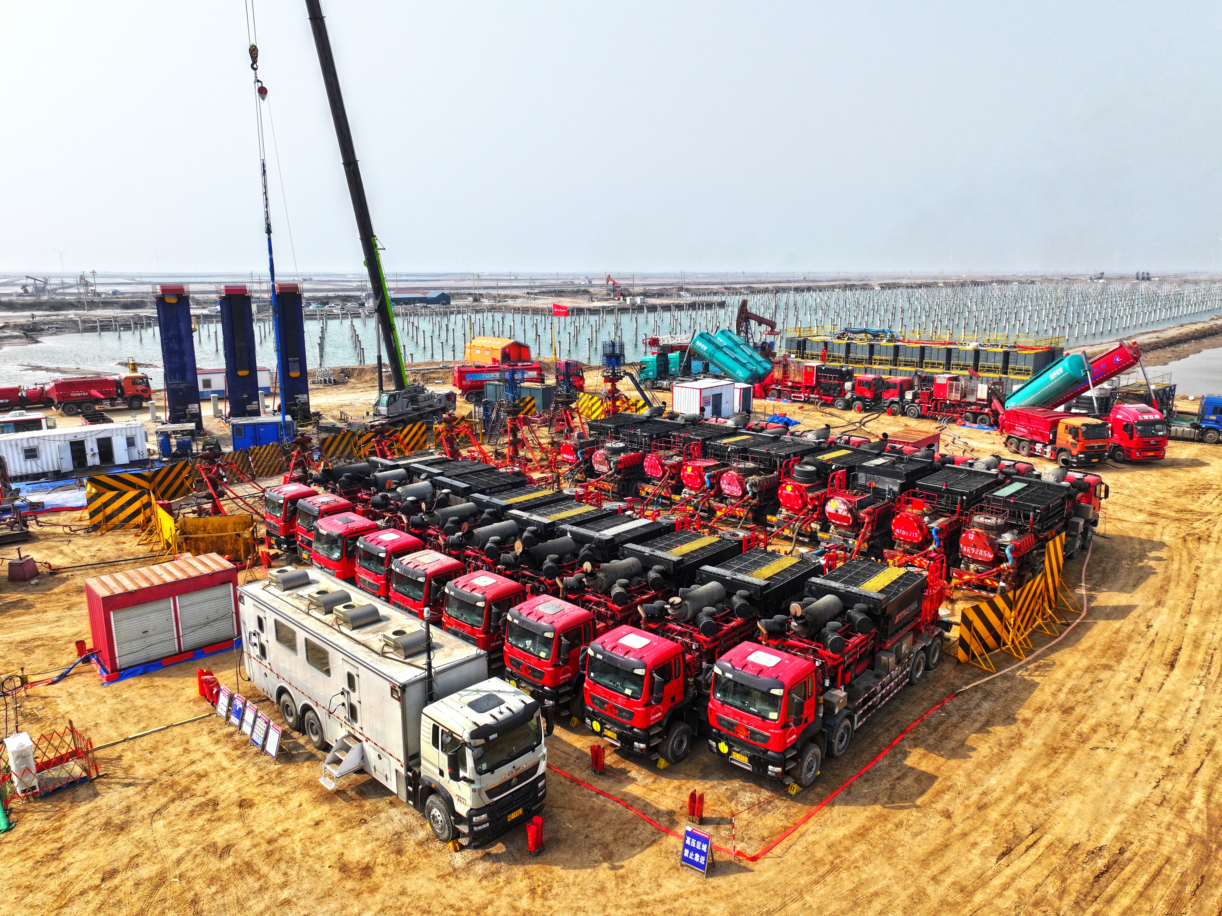 近日,胜利油田河口采油厂埕913—斜55井组压裂施工现场,工艺技术专家全程紧盯施工曲线、排量、液量、砂量及暂堵剂投放等关键参数,严控施工质量;生产管理部统筹现场运行,及时协调处置问题,保障作业安全高效推进。
