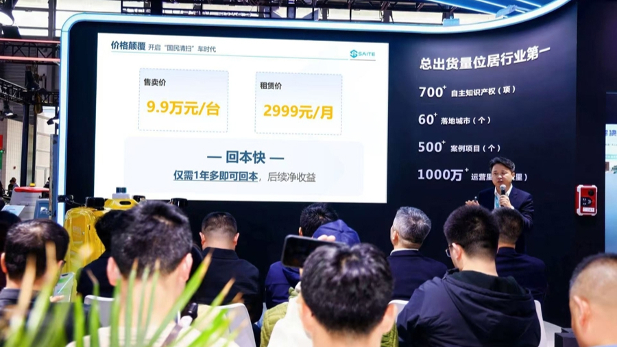 智慧环卫是智慧城市建设的重要民生板块,而无人驾驶清扫机器人的规模化应用,长期受困于价格高企、落地门槛高的行业痛点。无人环卫领域领军企业赛特智能在展会现场发布战略级量产车型净界S1,以9.9万元的终端售价,成为全球首款将价格拉至10万元以内的环卫清扫机器人,打破了行业价格壁垒。
