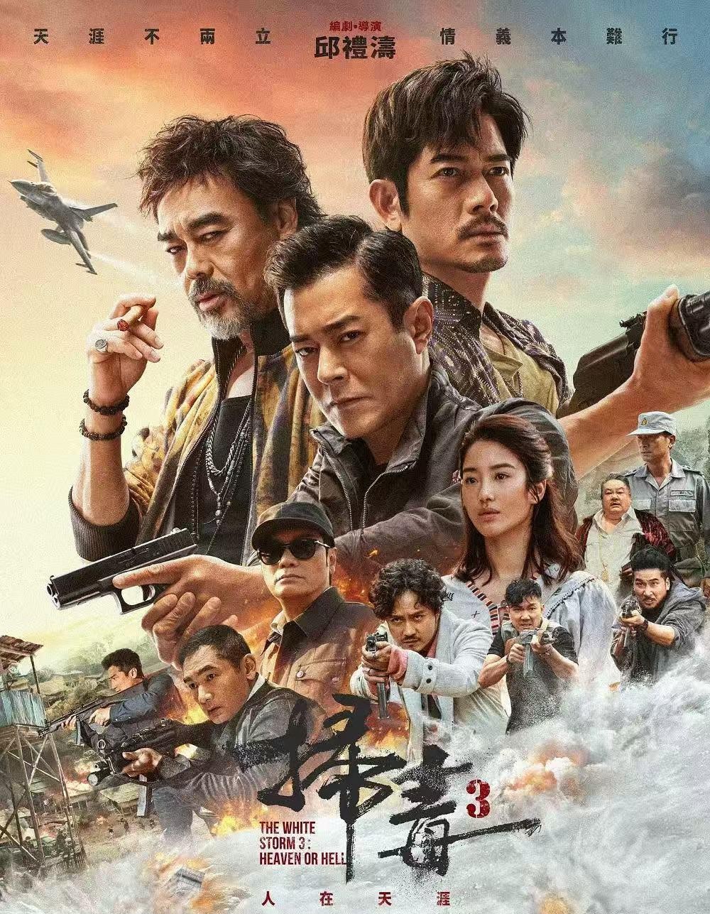 最典型的例子是《扫毒》系列。2013年11月上映的《扫毒》,口碑和票房都不错,称得上是香港警匪片在《毒战》后的又一重磅精品,有经典港片的核心要素,比如结尾处三兄弟的血战,有《喋血双雄》《英雄本色》英雄末路的孤傲豪气,也有《濠江风云》《放•逐》黑帮仇杀的宿命悲情。但其故事的重点,已经是警员之间的“兄弟情”压过了警与匪的较量戏码,《扫毒》应该说是港式警匪片对香港经典电影的一次超越性探索。到了2019年的《扫毒2:天地对决》,其探索走得更远,虽然影片中仍然延续了老港片的香港地铁站、学校、家庭等日常生活空间,但故事重心是场景更大的地铁爆破、枪战大场面。2023年《扫毒3:人在天涯》尝试以跨境毒枭叙事开拓新空间,影片上映后票房和口碑却创下系列新低。可以看出,《扫毒》系列图绘出香港警匪片远离香港地方性元素后,由黄金余晖到商业扩张到IP透支的典型轨迹。