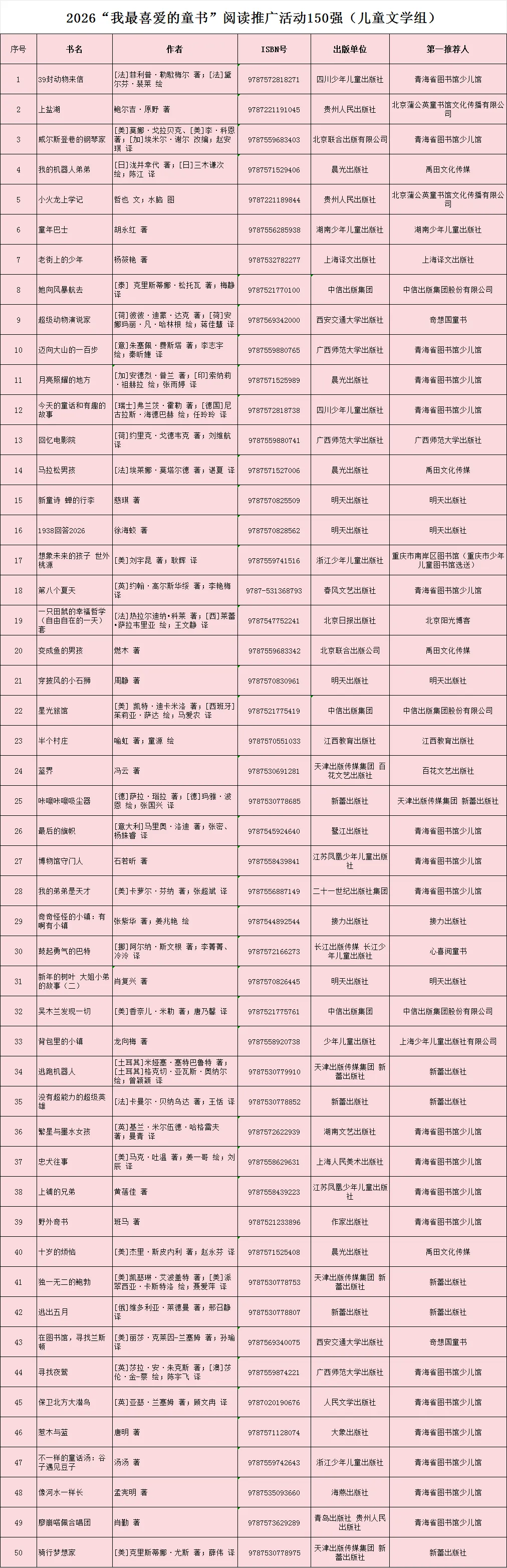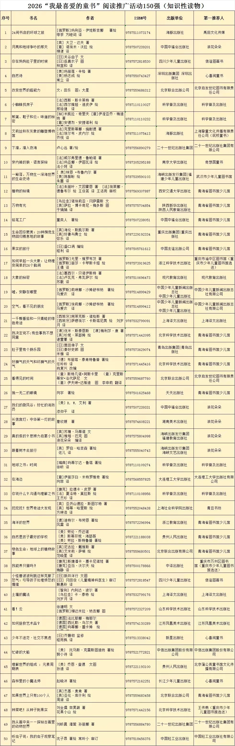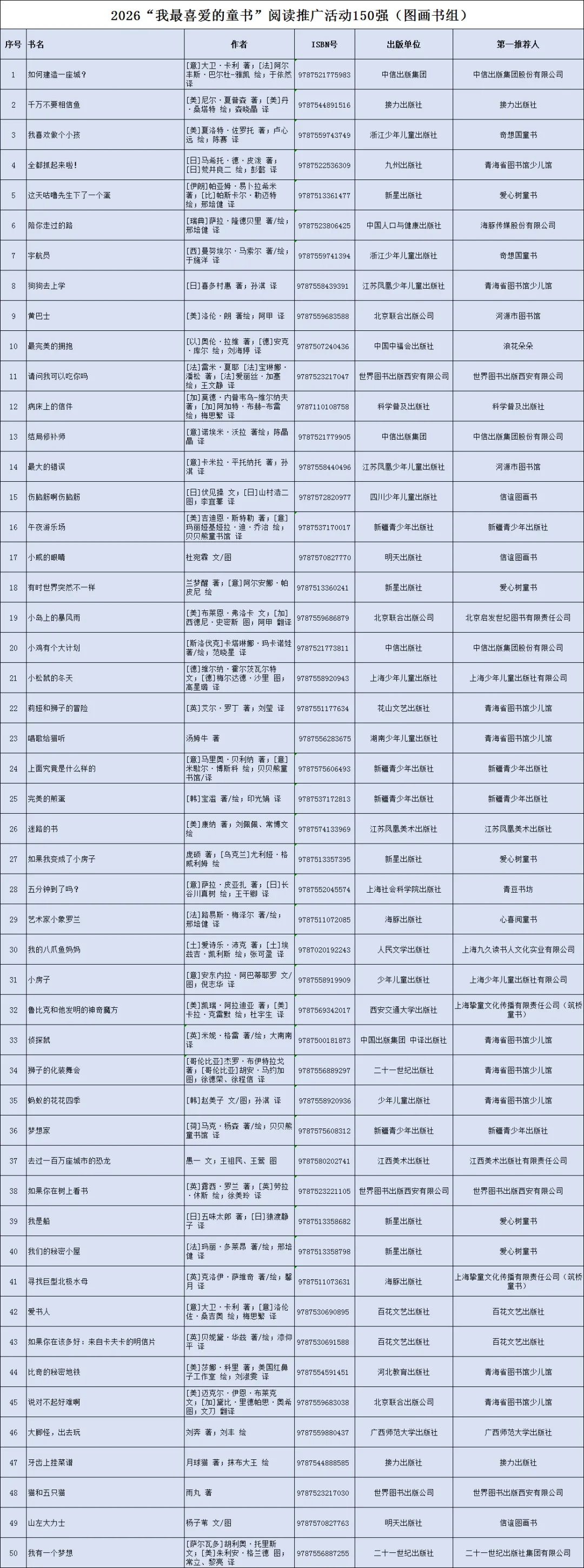 给孩子读啥书?2026“我最喜爱的童书”150强书单发布