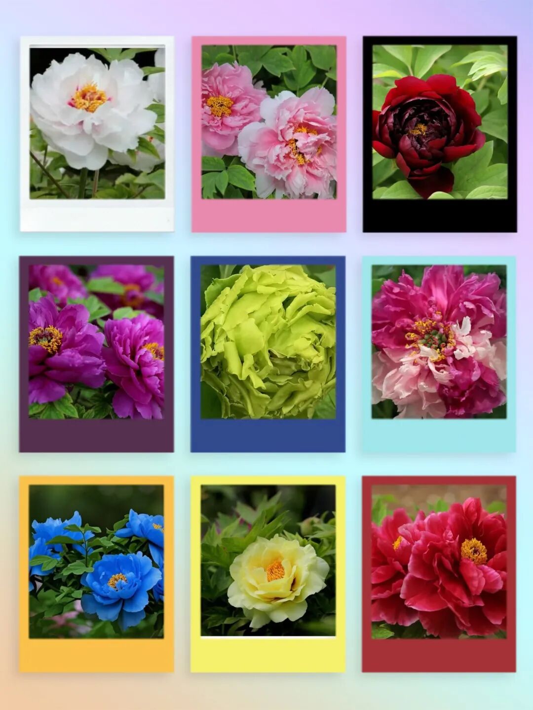 选红色,曹州牡丹园里的“火炼金丹”红得正、红得烈,如燃烧的云霞坠入人间;选粉色,百花园的“赵粉”娇而不媚,像少女脸颊泛起的一抹羞赧;选白色,“昆山夜光”在月色下泛着清辉,被誉为“牡丹中的夜明珠”;选黄色,“姚黄”贵为花王,金灿灿的花瓣层层叠叠,尽显王者气度;选黑色,“冠世墨玉”紫黑如缎,神秘而高贵;选绿色,“豆绿”清雅脱俗,是牡丹中的稀有品种……更不必说那些复色品种,一朵花上能同时呈现两种以上的色彩,仿佛是画师故意打翻了调色盘。