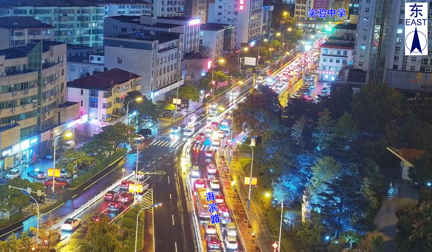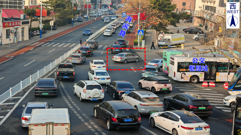 (一)交通流量集中。受区域路网影响,海滨路实验中学路口同时承载着实验中学“送学流”与戚谷疃、戚东夼、远遥等片区居民“通勤流”,早晚高峰时段流量集中、压力较大。