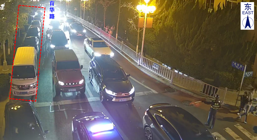 (三)占道停车影响。学校周边没有大型停车场,接学生车辆在育华路、东山路等占道停放,进一步降低路段通行效率。