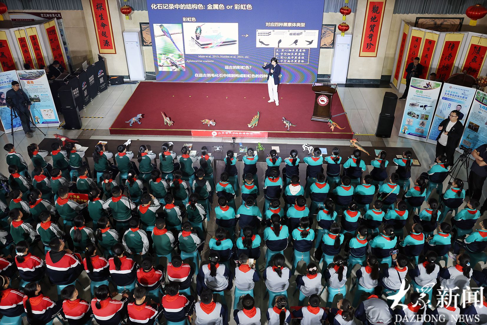 当天下午,周忠和、泮燕红分别做了《从恐龙到鸟:生命演化的伟大史诗》《鸟类羽毛的演化和科学意义》两场科普报告,用通俗易懂的语言,阐述如何从化石中读取古生物的习性特征,如何解读其进化的证据,小型恐龙怎样一步步进化出翅膀,进化出各种颜色的羽毛,演化为现代的鸟类。科普报告之后,还有现场互动问答及古生物化石展厅现场讲解。