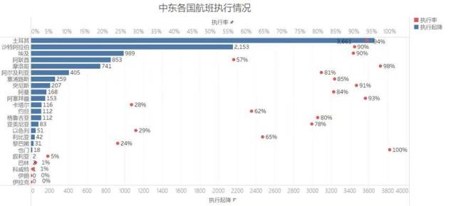 3月31日中东各国航班执行情况。VariFlight制图