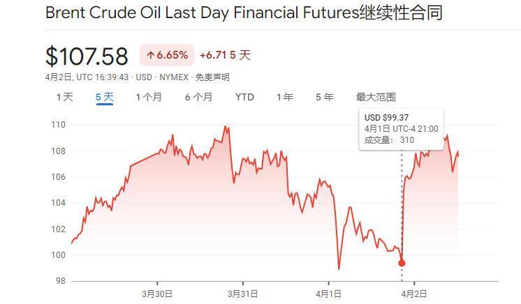 以6月交割的布伦特原油期货价格为例,在美东时间1日21时特朗普开始发表电视讲话后的一个小时内,该价格从99.37美元/桶飙升至105.97美元/桶,一个小时内的涨幅就达到6.64%。5月交割的美国西得克萨斯轻质原油(WTI)期货价格也在该时间段内从97.9美元/桶升至104.12美元/桶,涨幅达6.35%。截至2日收盘时,5月交割的美国西得克萨斯轻质原油(WTI)期货价格已升至111.54美元/桶,单日涨幅达11.42%。