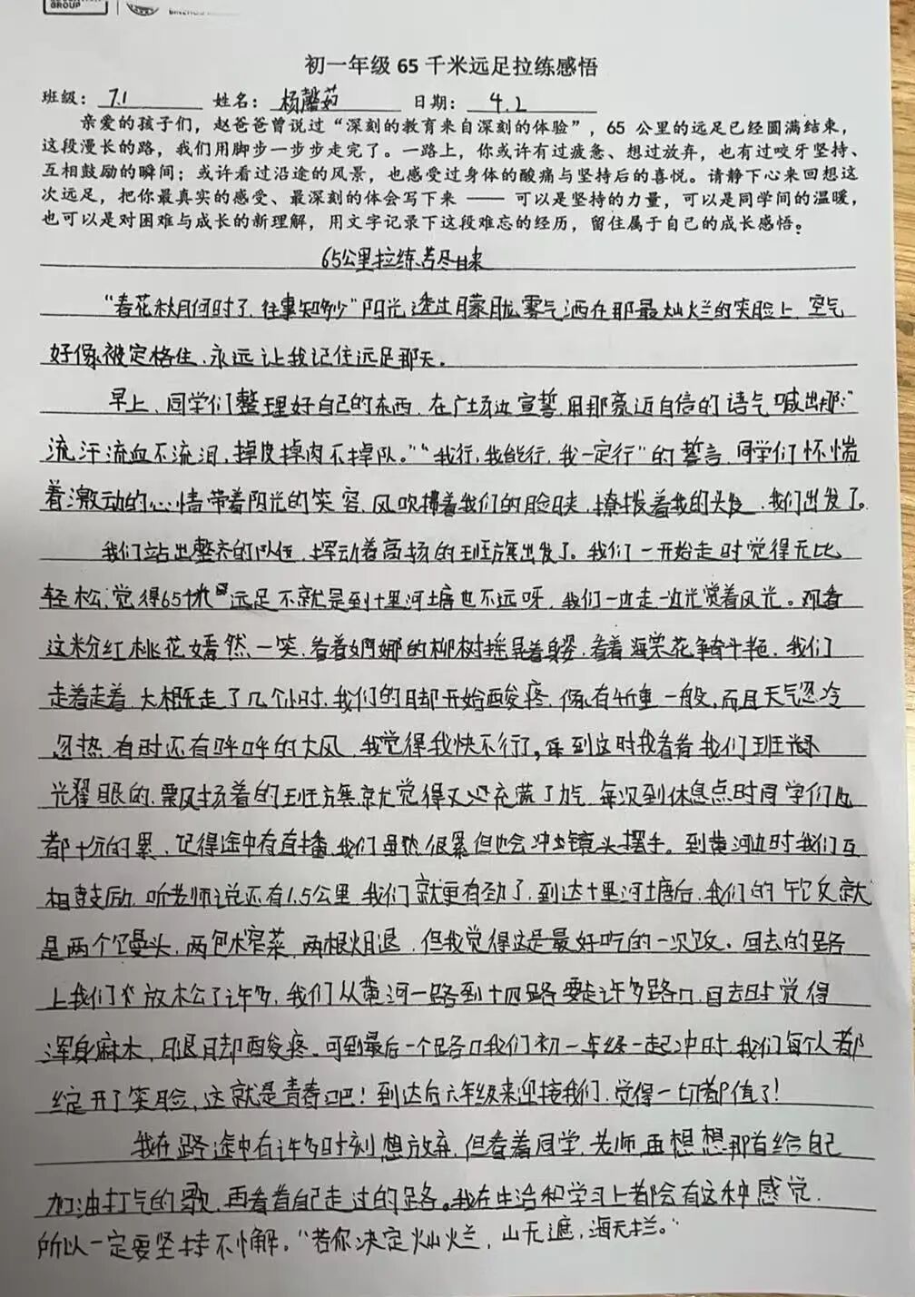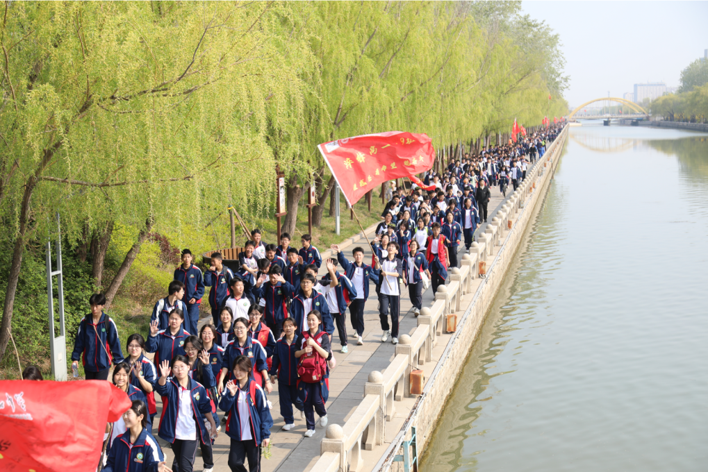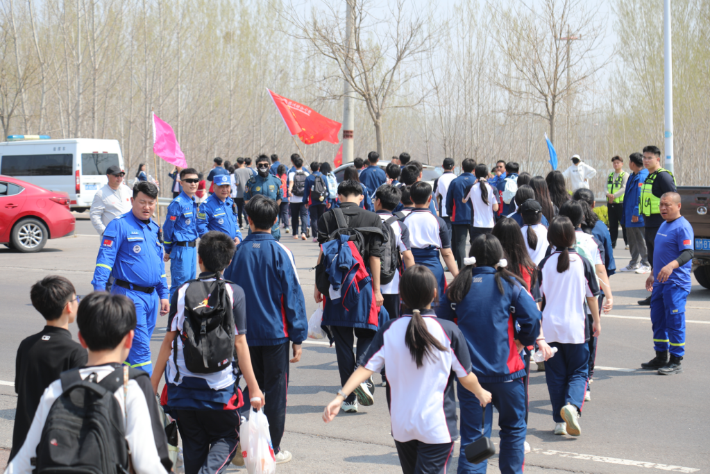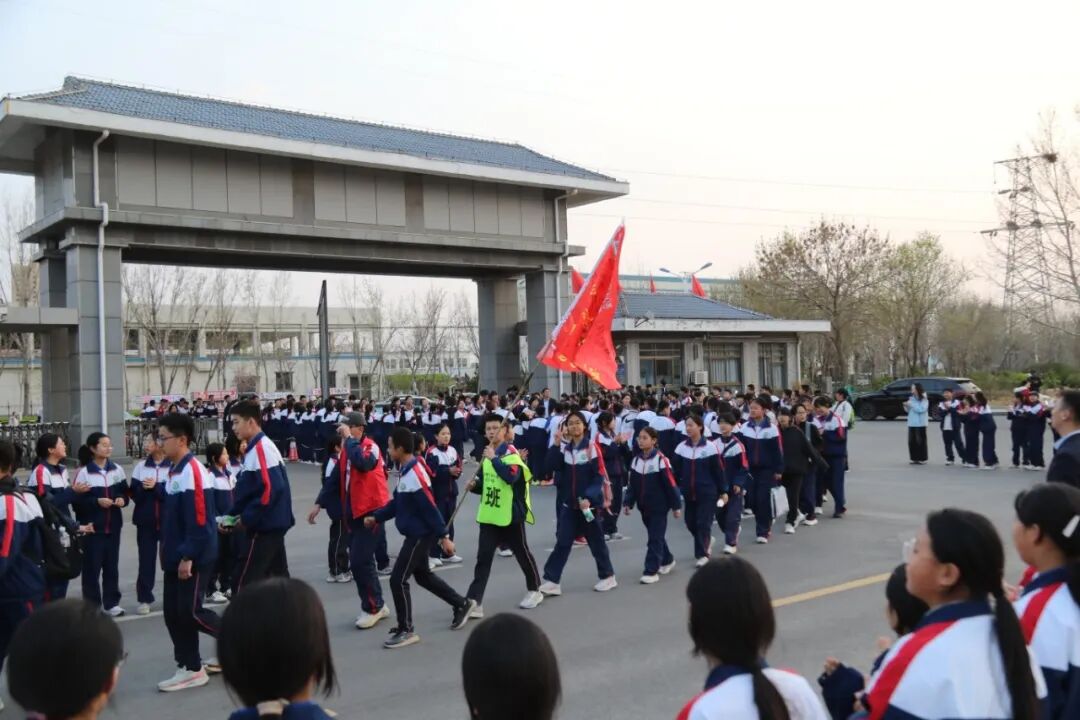 队伍如长龙般穿行于城市与乡野,班旗在风中翻卷成猎猎战歌,花海与春日风光为远足增添诗意,师生们以歌声、口号与欢笑回应自然的馈赠。