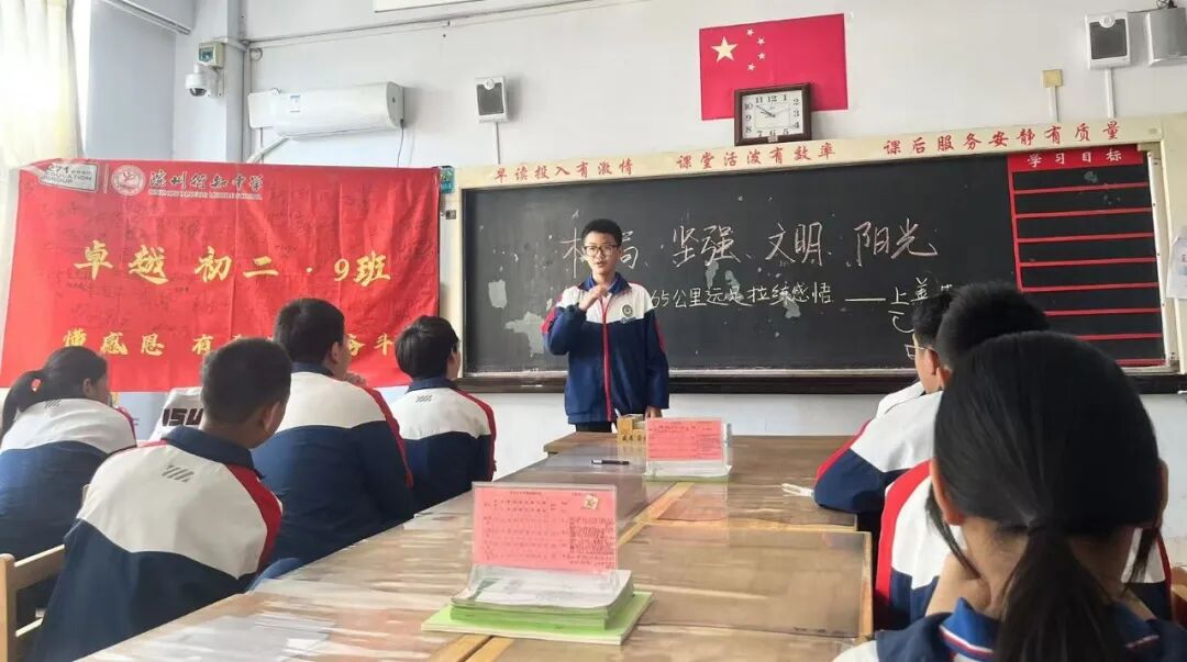 各班级召开了主题班会,共同学习《65千米远足拉练课程活动方案》,并制定出独具特色的班级保障措施。同学们在班旗下庄严宣誓,郑重签下自己的名字——那一个个名字,是对自我的承诺,更是对团队责任的担当。