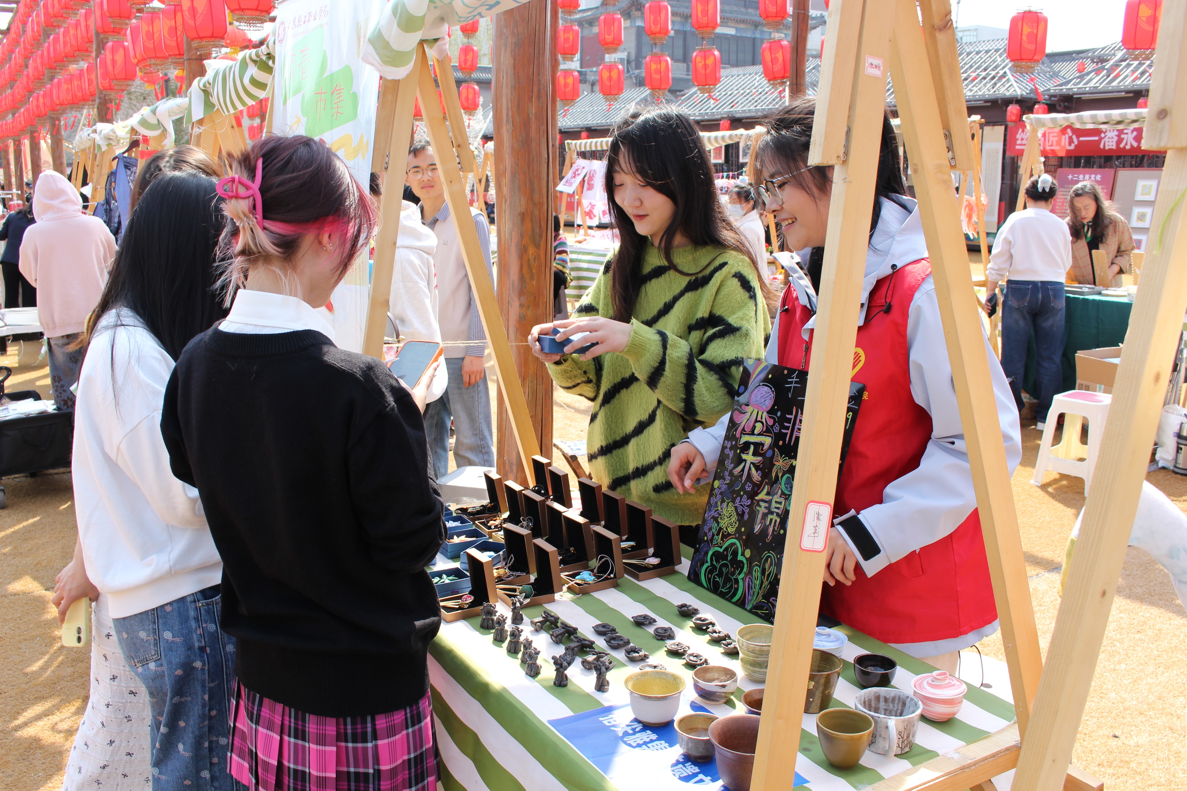 现场举办了大学生创业陪跑项目路演,优秀创业团队展示创新成果、分享创业实践。同期开市的“金周村・银子市”大学生轻创非遗市集,汇聚非遗文创、手工创意、便民服务等特色摊位,为青年创客提供低成本、低门槛的创业实践平台。现场设立创业政策咨询区与创业导师“一对一”服务点,为创业者提供政策解读、项目指导、资源对接等现场服务,帮助创业者切实解决创业过程中实际问题。