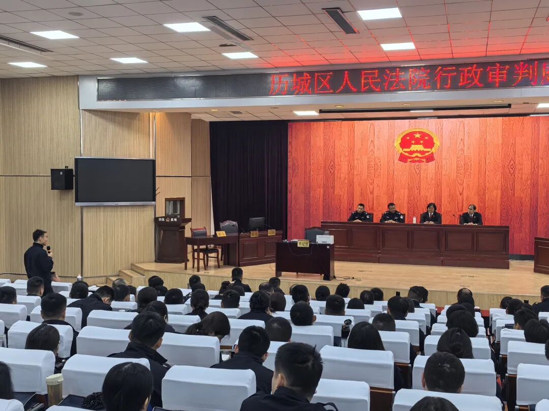4月2日,济南市历城区人民法院行政审判庭受济南市公安局人民警察训练基地的邀请,开展行政审判观摩庭和专题讲座活动。济南市公安局人民警察训练基地的200余名在训干警旁听了此次庭审,并参加了后续讲座。