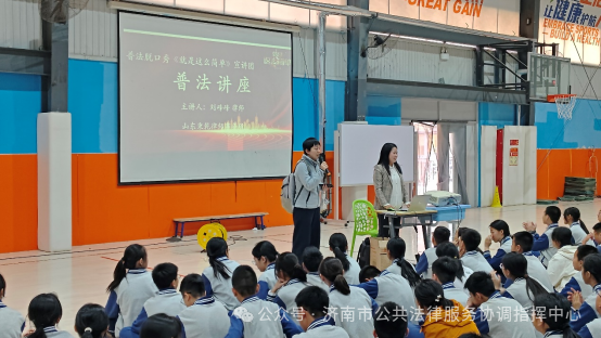 3月30日,济南市公共法律服务协调指挥中心联合团市委维护青少年权益部走进济南市景明中学,开展“泉城·青益——青少年法治宣传教育活动”。本次活动是中心今年以来举办的第十三场青少年普法专题讲座,由《就是这么简单》普法脱口秀宣讲团成员、山东秉乾律师事务所刘峰峰律师为学校八年级近300余名师生生动开讲“法治课堂”。