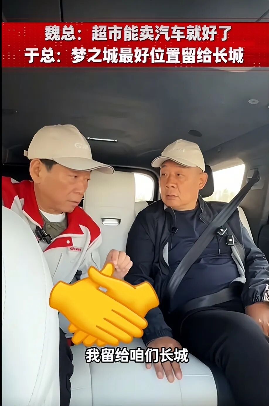 4月2日,于东来与魏建军见面,一同参观长城汽车厂区。长城汽车董事长魏建军全程陪同,二人乘坐电瓶车穿行于自动化生产线之间,随后在试车场将坦克700开到时速200公里,边参观边交流边体验,完成了从线上互动到线下相聚的跨界会面。于东来称胖东来累计已购置300余台长城汽车,最近他又预订了20台长城最高端的越野车坦克700送高管。
