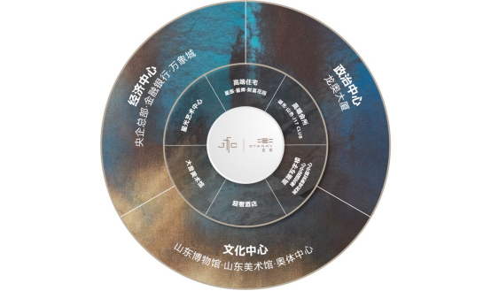 外圈(城市核心区):主要依托于政府的规划、塑造的CBD、万象城、山东美术馆、博物馆、地铁等因素。这是项目长期发展及保值的肥沃土壤。它并非项目自身建设,而是项目在地理上位于城市的核心区域,能使业主便捷地享用到周边现成的顶级资源,如政治资源、经济资源、文化资源等。