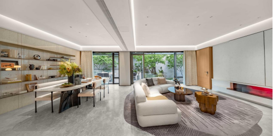 作为星晖业主,可以体会到完整的“双会所”服务理念。会所整体以“山水泉城”为核心理念,将济南特有的“一城山色半城湖”的自然意境,完美融入会所的空间布局与功能体验中,让每一次社交都浸润于自然,采用“一庭两层”的立体格局,以大面玻璃消融室内外界限,外部庭院景观向内延伸,内部空间向自然打开。双层空间围绕庭院形成洄游动线,视线在上下之间穿透风景,创造“俯仰皆景、移步换境”的沉浸体验。
