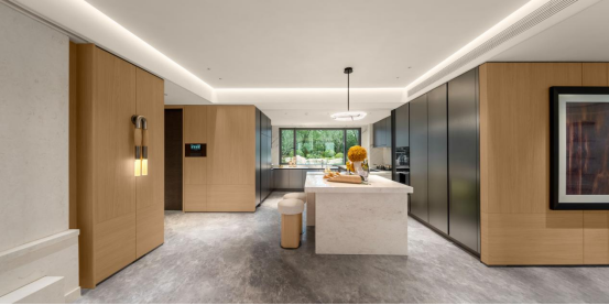 奢阔社交餐厨系统,定制宴会级悦享:奢阔社交餐厨系统采用LDKB一体化设计,以超大尺度营造开阔通透的视觉与使用体验,强化空间的社交属性与互动性。科学动线规划,让烹饪、备餐、用餐、交流互不干扰,兼顾实用性与仪式感,可轻松满足家庭日常用餐、亲友聚会、小型宴请等多元场景,打造宴会级的用餐体验与生活享受。定制化的空间布局与美学设计,让餐厨空间既承载烟火生活,又彰显高端居住格调,实现功能与品质的双重升级。