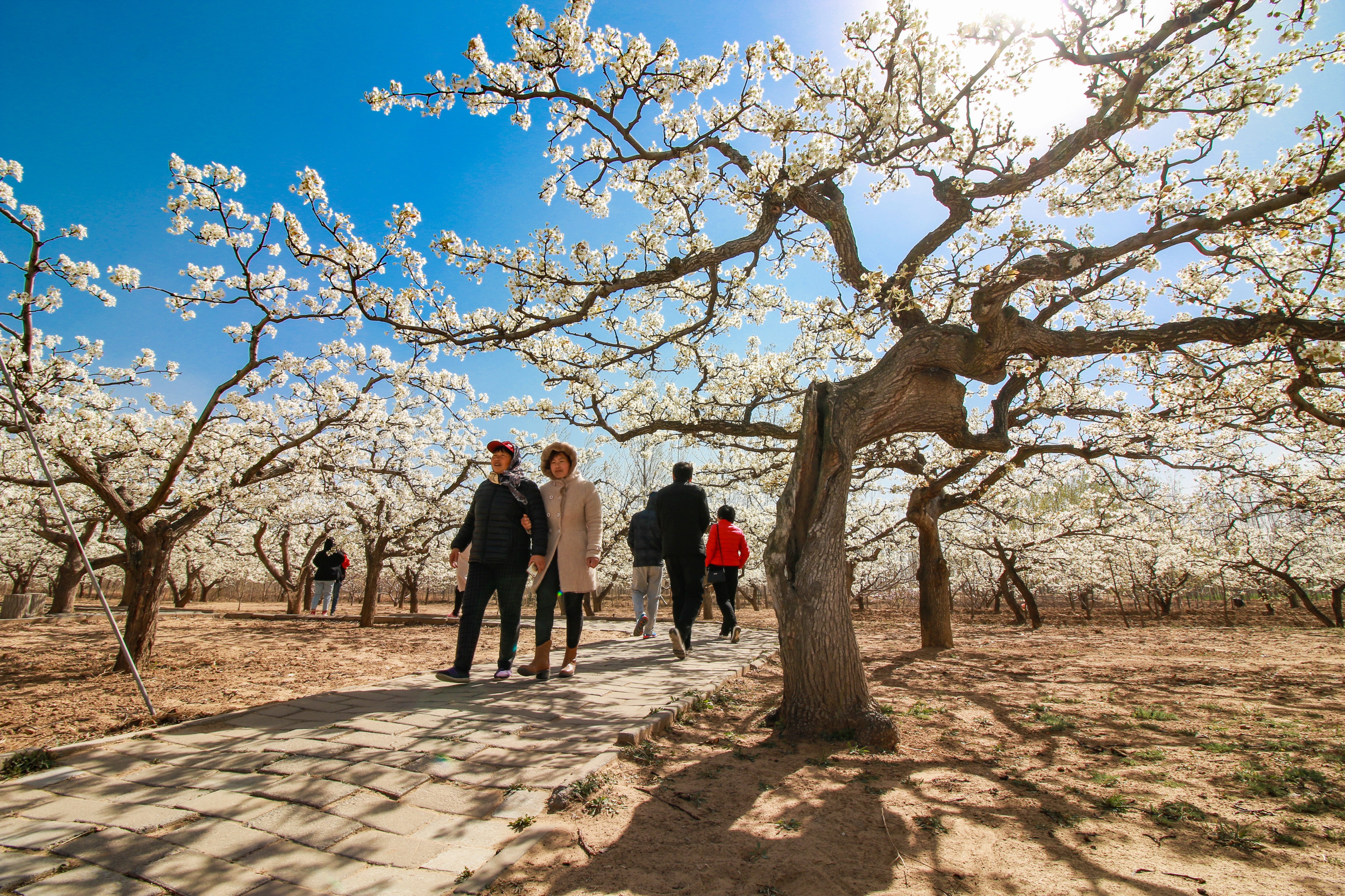 武城县则是以一场梨花音乐会浪漫启幕。以花为媒、以乐会友,游客或徜徉花海,观看专业演出与社区文艺展演;或在创意布景错落有致梨园打卡区拍照留念;或围坐梨花树下,品咖啡、饮果汁,于自然绿意中慢享惬意时光。乐陵市大孙乡梨园迎来最美时节,开启“芳华礼遇 百年梨园”旅游周,游客在这里不仅可以穿上汉服漫步梨园,在古树下、长廊间定格国风写真,在梨园公益相亲专场邂逅良缘,还能吃到地道的长桌宴、流水席,参加有趣的劈柴大赛。
