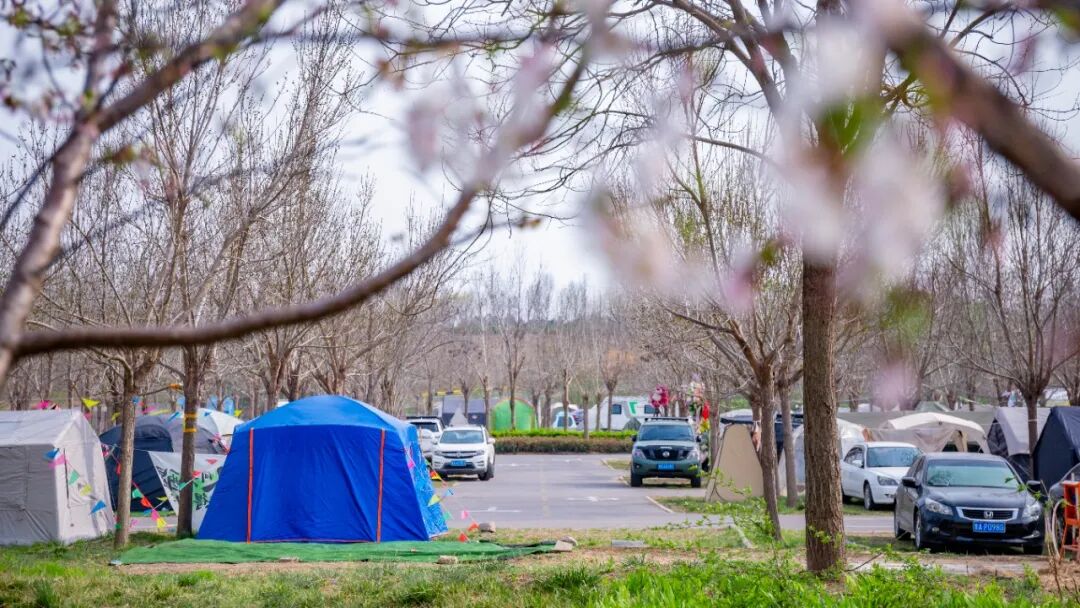 在齐河县中国驿・泉城中华饮食文化小镇,正在举行首届露营大会。风格各异的帐篷错落排布,房车点缀其间,游客或围坐休闲,或漫步赏景,处处洋溢着轻松惬意的氛围。最远的游客从黑龙江驱车1700余公里而来,也有周边县市的露营爱好者。在露营爱好者楚萍的帐篷内,茶几、座椅、鲜花整齐摆放,生活物品一应俱全,温馨舒适宛如居家。“暂时放下手头的事务,好好感受春日的美好。”楚萍笑着说,闲暇时她们会在小镇内闲逛,周边还有欧乐堡梦幻世界、动物王国等景区,游玩选择十分丰富。