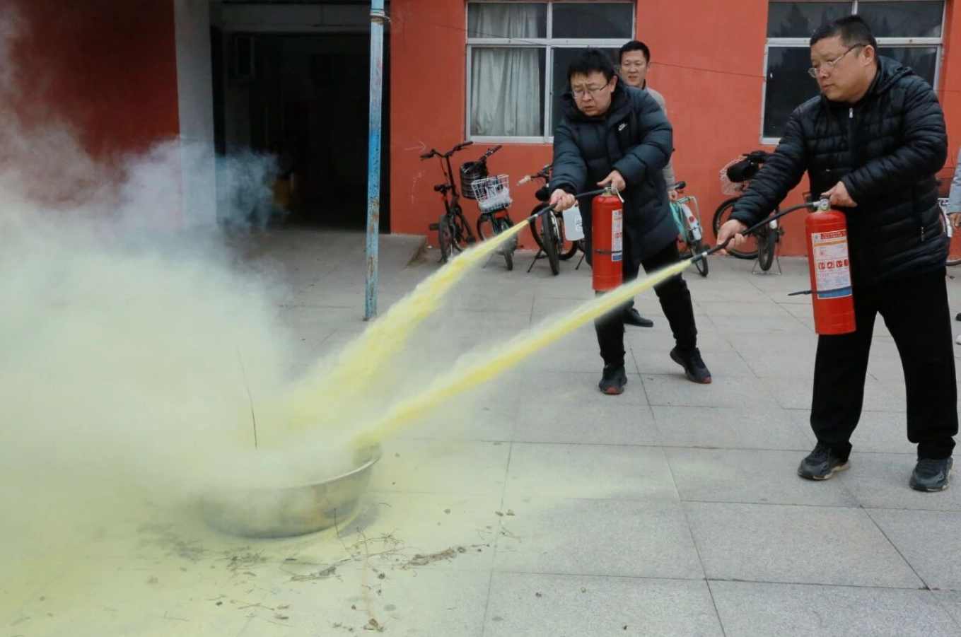 “一提、二拔、三握、四压,灭火口诀要记牢。”宣传员现场讲解演示了灭火器的操作步骤和技巧,同时指导教职工轮番上手实操,切实掌握初期火灾扑救技能。