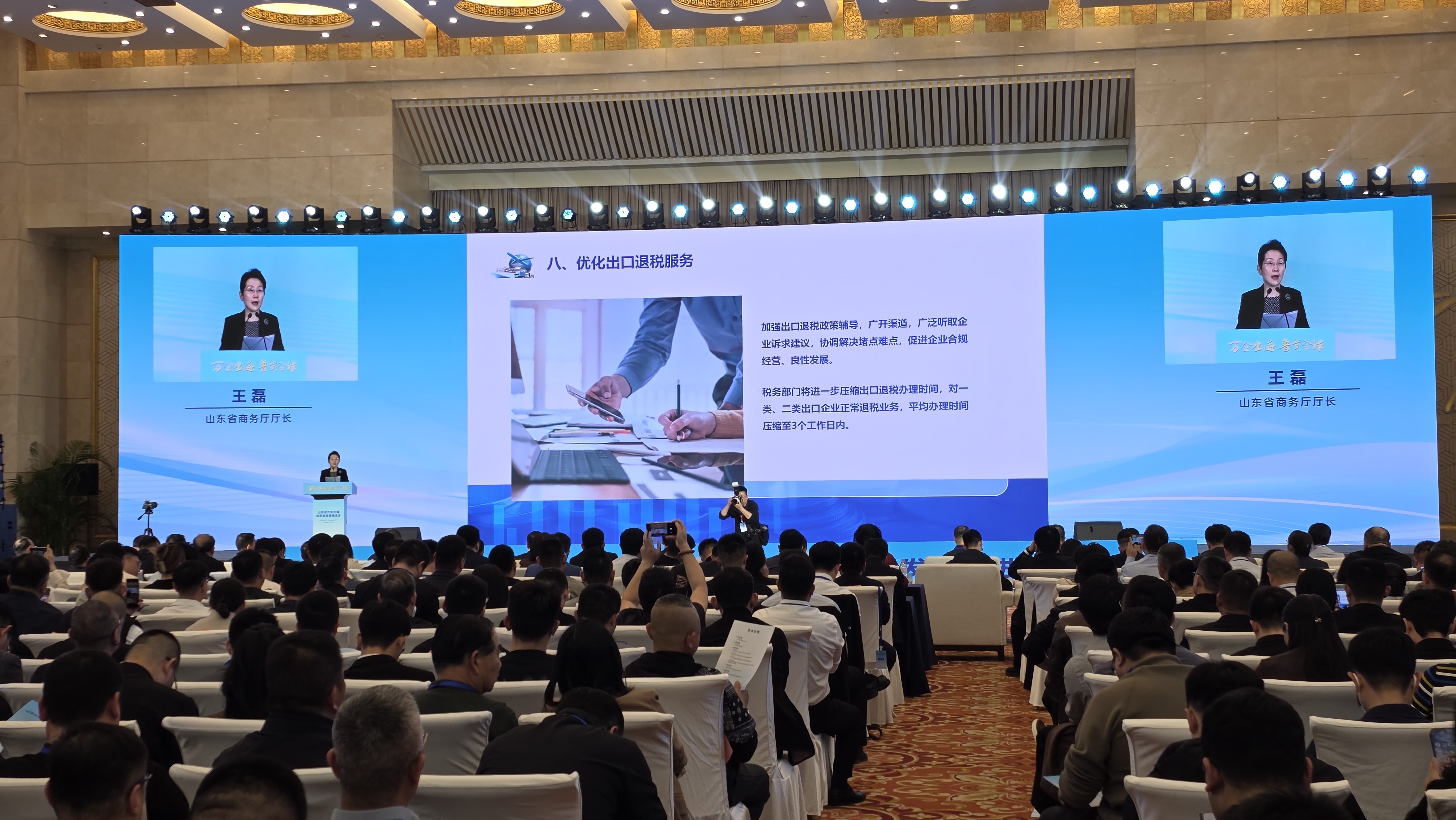 会上,山东省商务厅党组书记、厅长王磊发布了《促进汽车出口的若干措施》,聚焦省内汽车企业实际需求,围绕物流、税务、金融、通关等方面推出了一系列务实精准的举措,全力以赴服务企业拓市场、增订单、提质效。山东省港口集团党委书记、董事长霍高原宣读了《山东省汽车出海联盟倡议书》,推动山东汽车产业从“单打独斗”迈向“抱团远航”。济南海关、山东港口物流集团分别发布了促进山东汽车出口提质增效便利化措施和海外售后共享共建服务网点布局方案等助企举措,持续优化口岸通关环境,解决企业出海的后顾之忧。活动现场,“汽车出海联盟公共服务平台”正式启用。