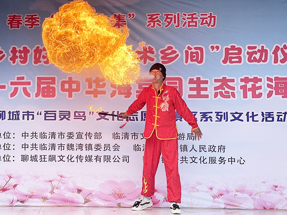4月2日,临清市魏湾镇第十六届海棠花节如期开幕。与往年不同,本届花节从开场便将“主角”让给村民,让群众真正成为节庆活动的参与者、受益者。开幕式上,当地村民自编自演的鼓舞《精忠报国》率先点燃气氛,非遗“吐火”、川剧变脸等沉浸式表演轮番登场,引得现场掌声不断,既有效聚集了人气,更延长了游客停留时长。开幕式当天园区游客络绎不绝,周边餐饮、零售摊位生意火爆,从“赏花打卡”到“沉浸体验”,花节的内容升级切实将文旅热度转化为客流增量。