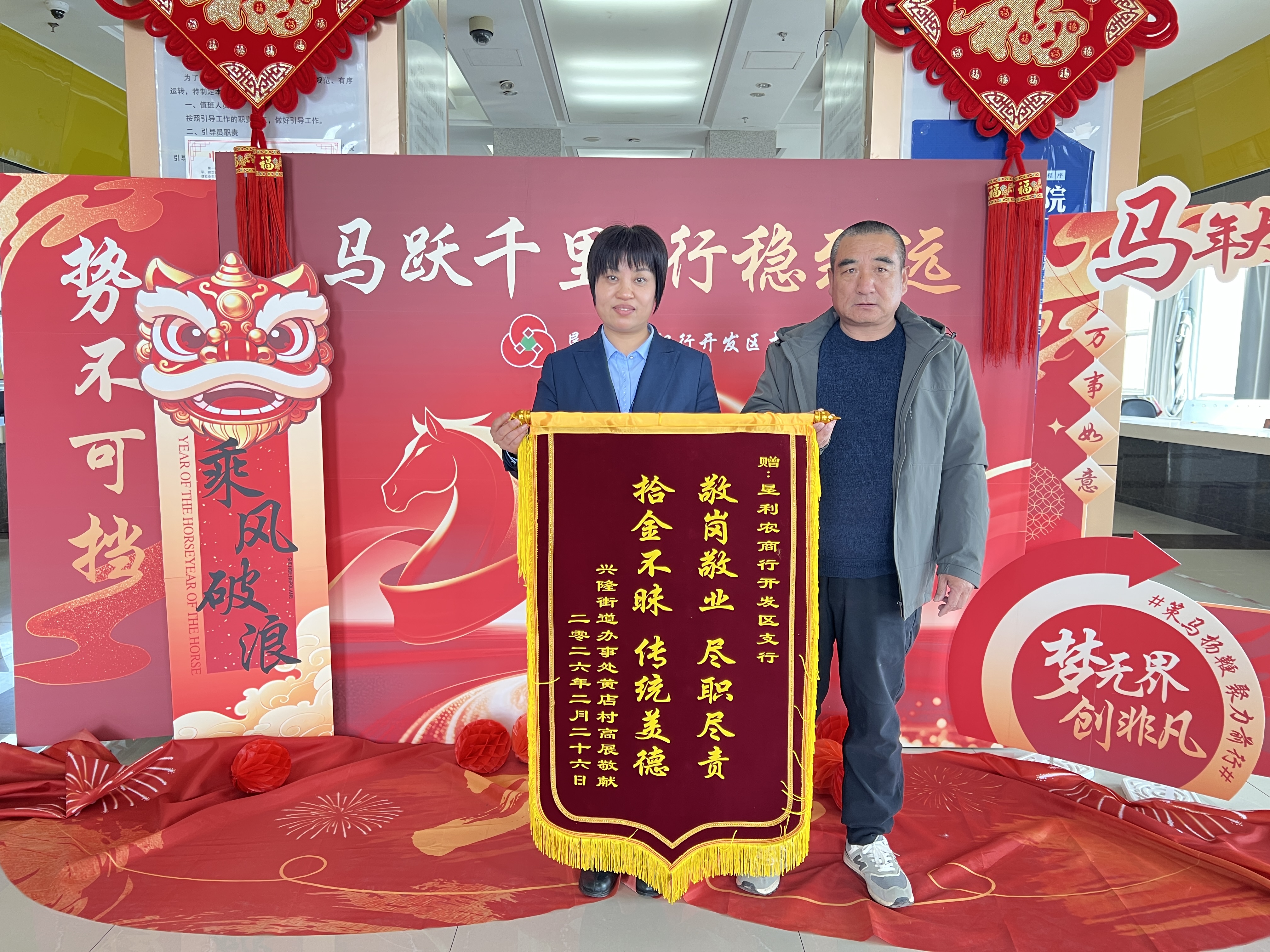 “爱岗敬业 尽职尽责 拾金不昧 传统美德”十六个鎏金大字,不仅是对工作人员的认可,更是垦利农商银行暖心金融服务的生动印证。