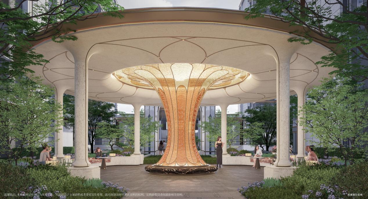 下沉庭院中,中海团队远赴泰山遍寻千株,甄选出9棵珍藏级全冠移植油松,单株价值远超普通苗木数倍,风骨浑然天成;近500万巨资打造的顶奢荷风亭,成本超传统凉亭近十倍,以大量铝板型材打造15米高、200㎡星空顶,夜晚灯光亮起,恍若置身璀璨星河;后花园更斥资近千万打造琉璃亭,每一处标准都刷新济宁所见。