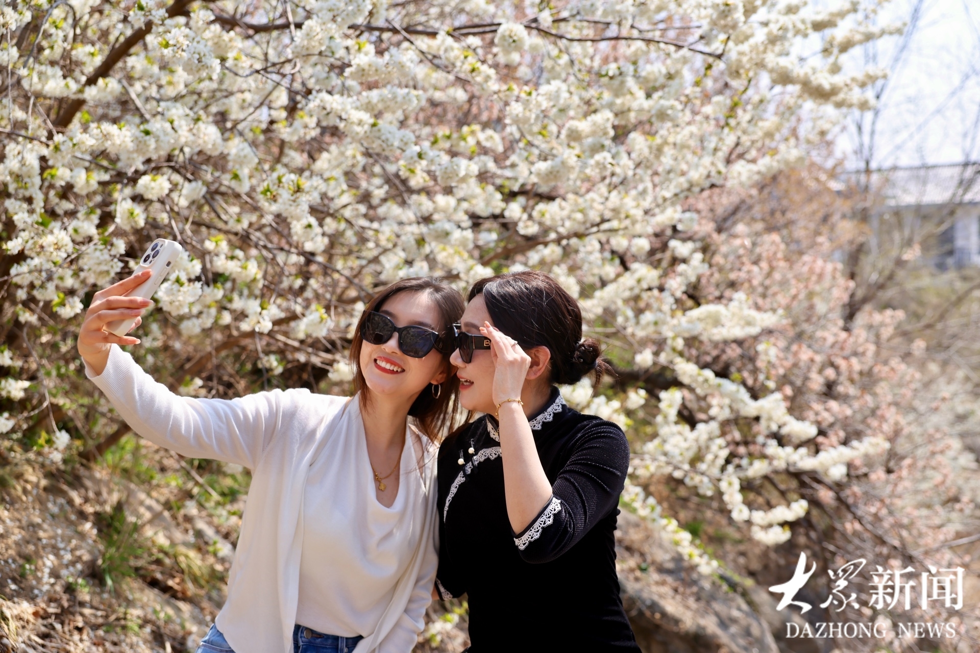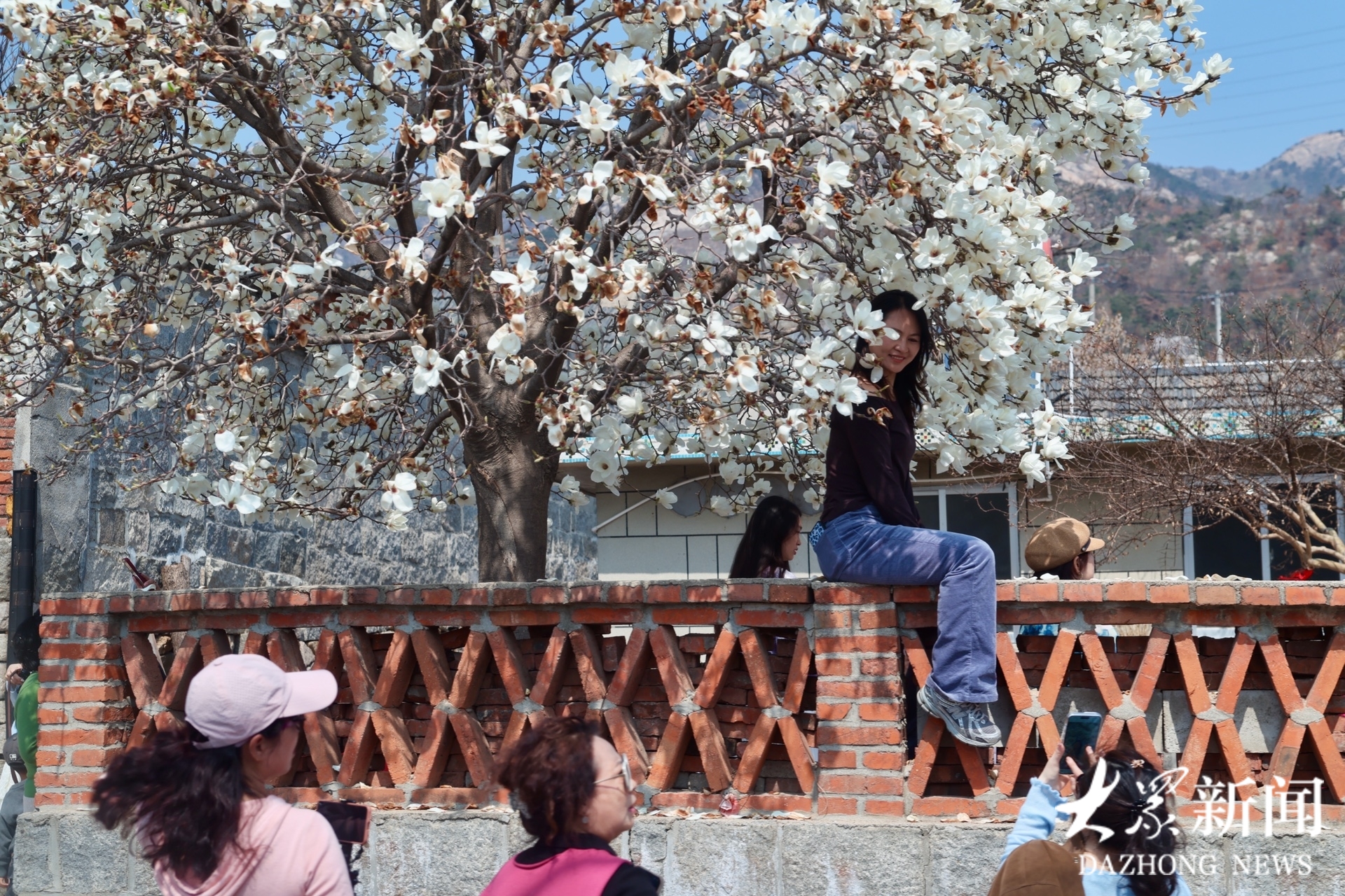 4月2日,威海市文登区,春光和煦,清风徐徐,昆嵛山脚下的六度寺村,水岸溪畔,道路两侧,院落山坡,游客漫步赏景,打卡拍照,乐享满屏春花灿烂。