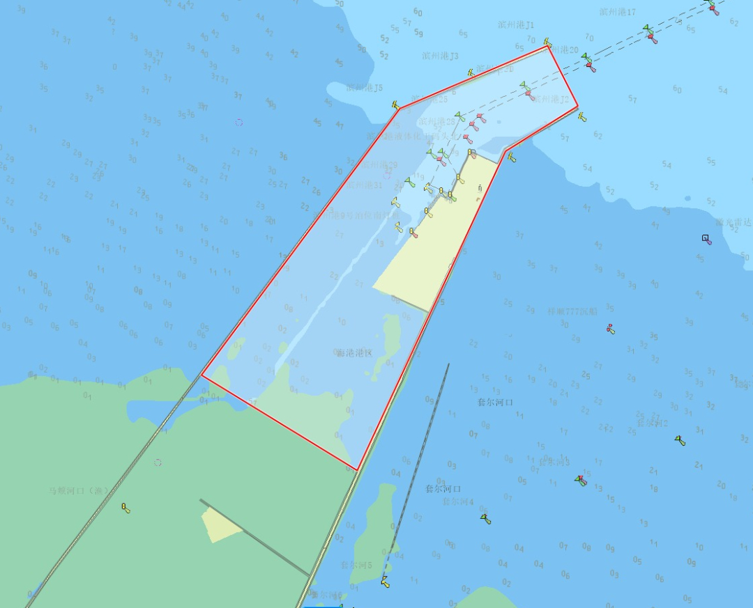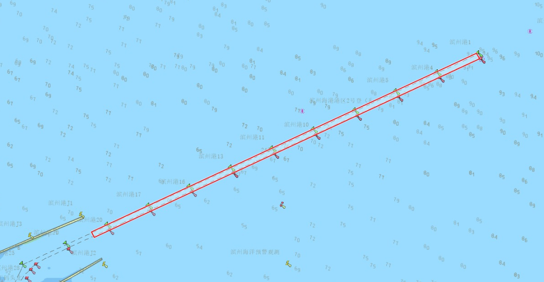 (二)航道:自滨州港1号浮标至20号浮标的红绿浮标之间的水域