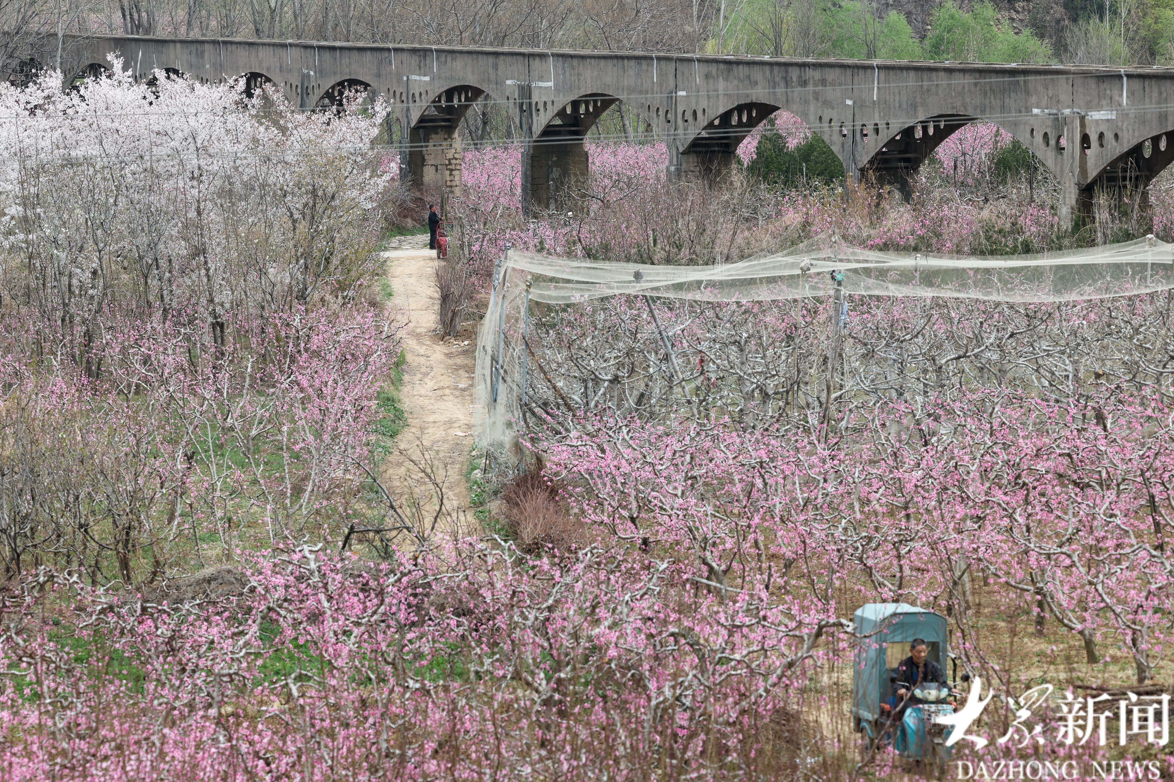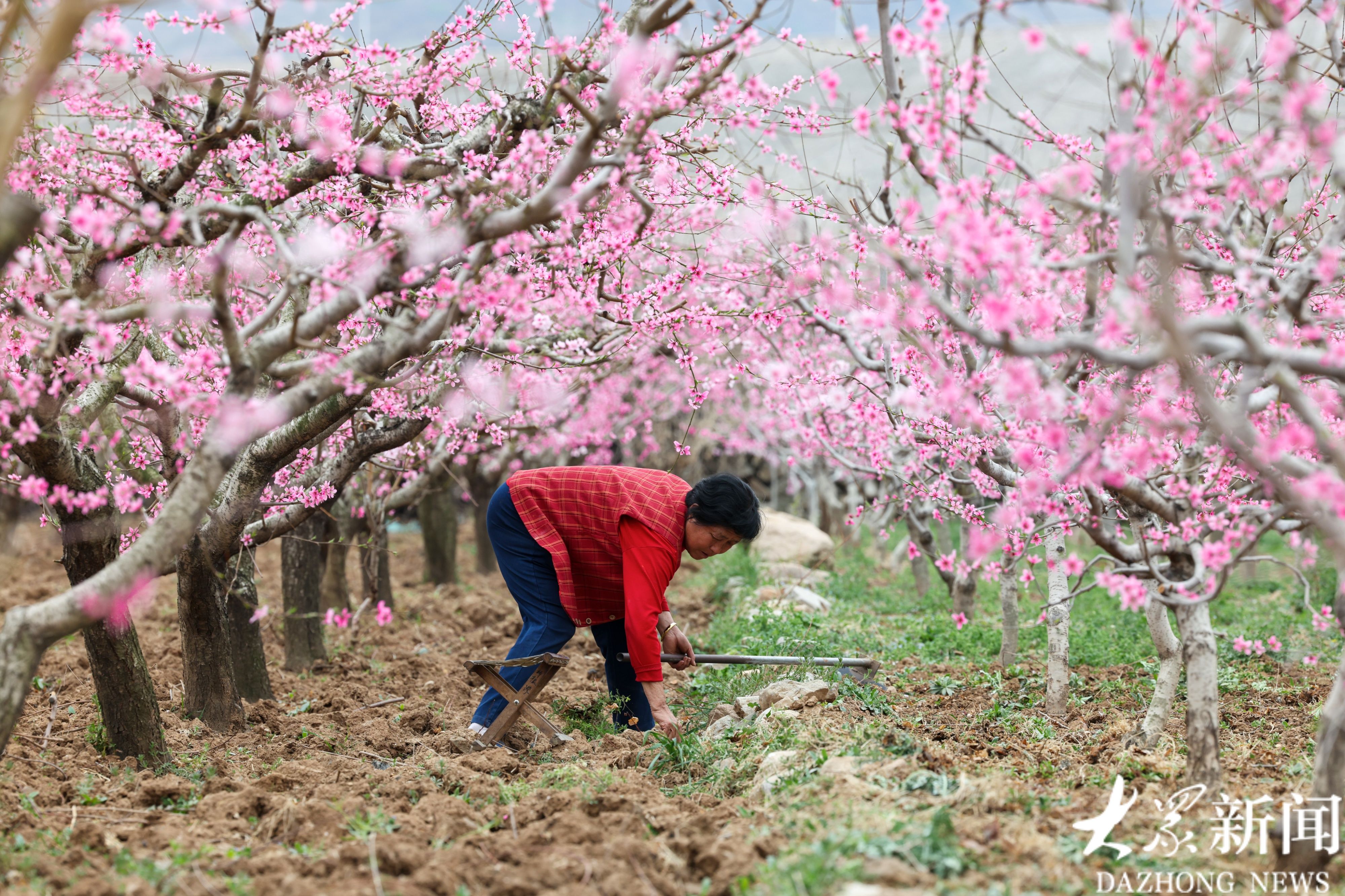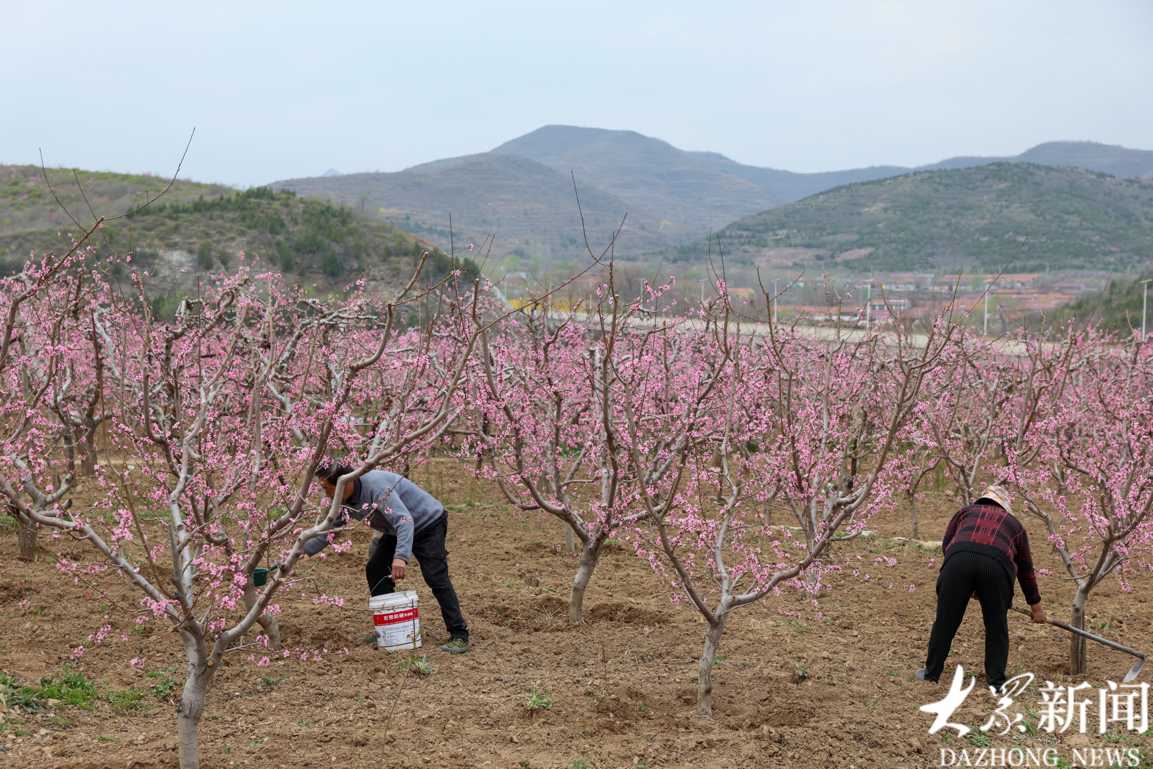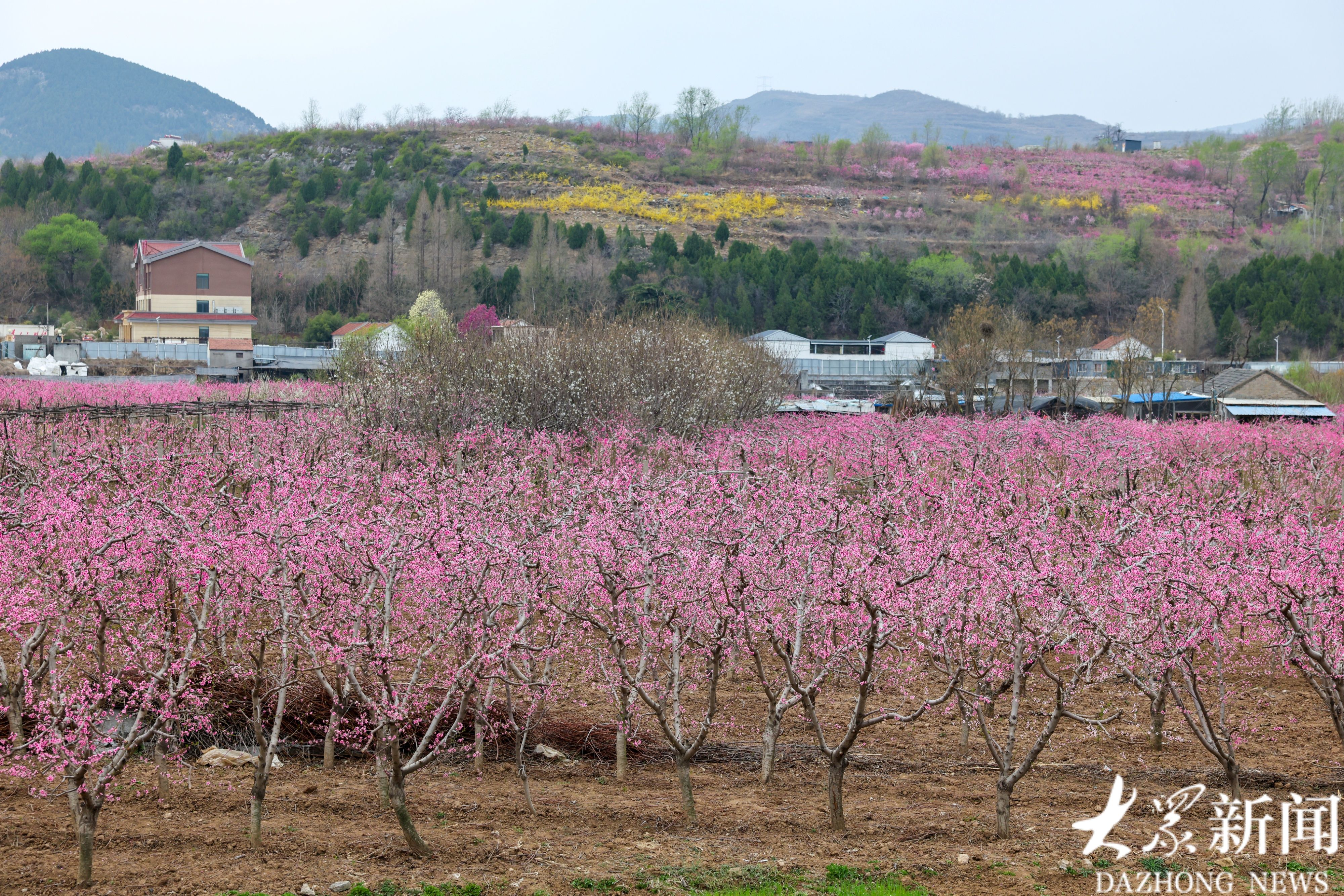 4月1日,潍坊市临朐县嵩山生态旅游区4.5万亩桃花竞相绽放,漫山遍野、灿若云霞。花海如潮,花香四溢,果农在花海中劳作,宛若置身世外桃源。据悉,此处桃花花期将持续至四月中旬。(大众新闻记者陆金星)