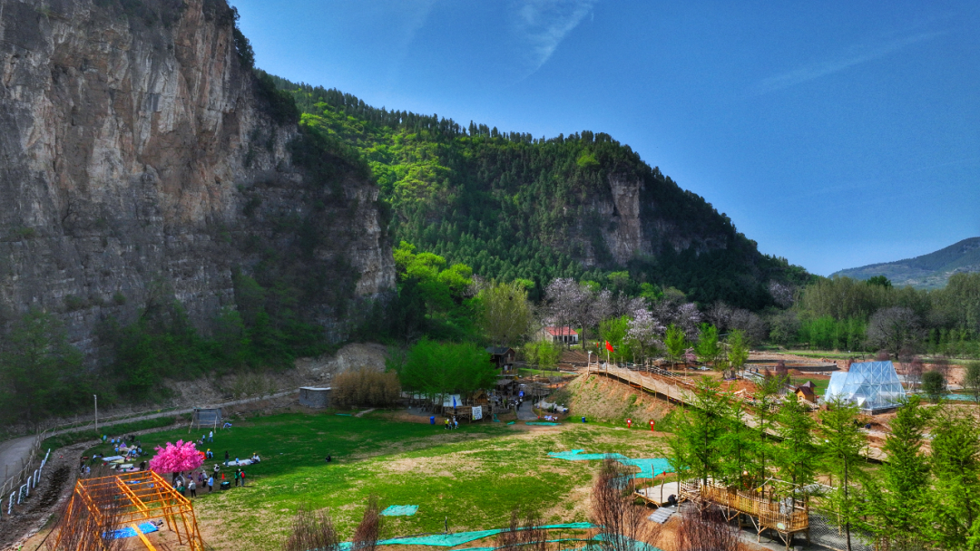 第一站是有“北方小九寨沟”之称的锦绣许村。这里自然风光独绝,青山环抱、碧水潺潺,五彩池波光潋滟。“陈毅元帅拴马槐”承载红色记忆,漫宋古街延续民俗风情,百亩银杏林沉淀岁月韵味。另有玻璃栈道、观光竹筏、喊泉等特色体验设施,以及星空露营草坪、沙滩游乐园等休闲场地,让你沉浸式感受田园慢生活的诗意与治愈。
