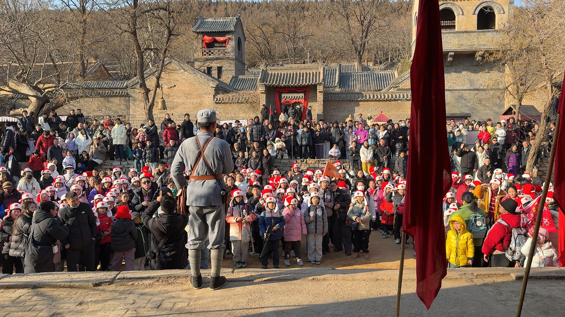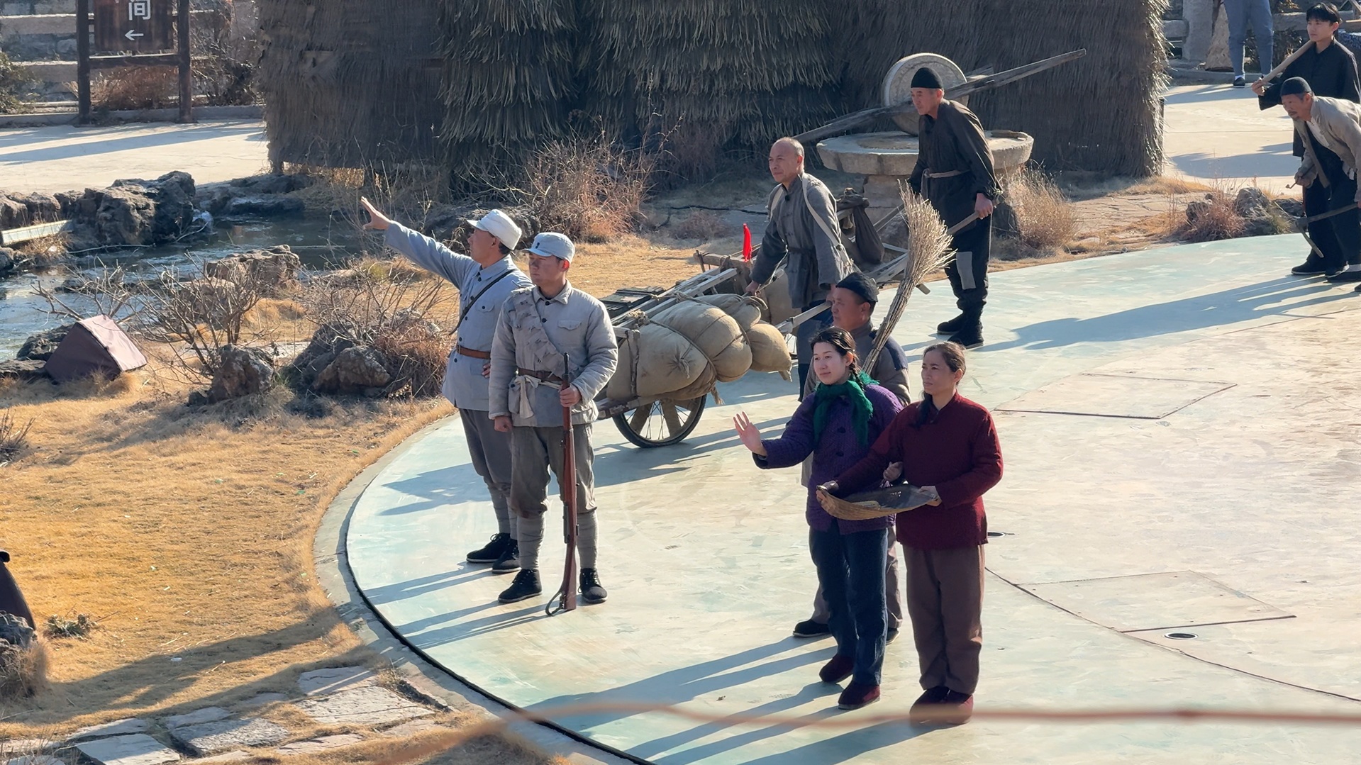 在沂南县马牧池乡的红嫂家乡旅游区,一场名为《重走支前路》的行进式演出,正重新定义红色旅游的体验边界。这里没有传统的“台上台下”,游客不再是旁观者,而是推起独轮车、扛起扁担的“支前群众”。在模拟的枪林弹雨中,游客们穿越古村、冲过火线,亲身体验那段烽火岁月的艰辛与荣光。