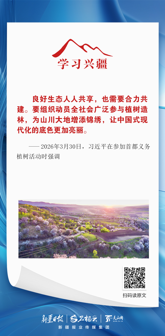 学习兴疆丨良好生态人人共享,也需要合力共建天山网 2026-04-03 15:51:10良好生态人人共享,也需要合力共建。要组织动员全社会广泛参与植树造林,为山川大地增添锦绣,让中国式现代化的底色更加亮丽。——2026年3月30日,习近平在参加首都义务植树活动时强调责任编辑:帕提姑丽·牙森