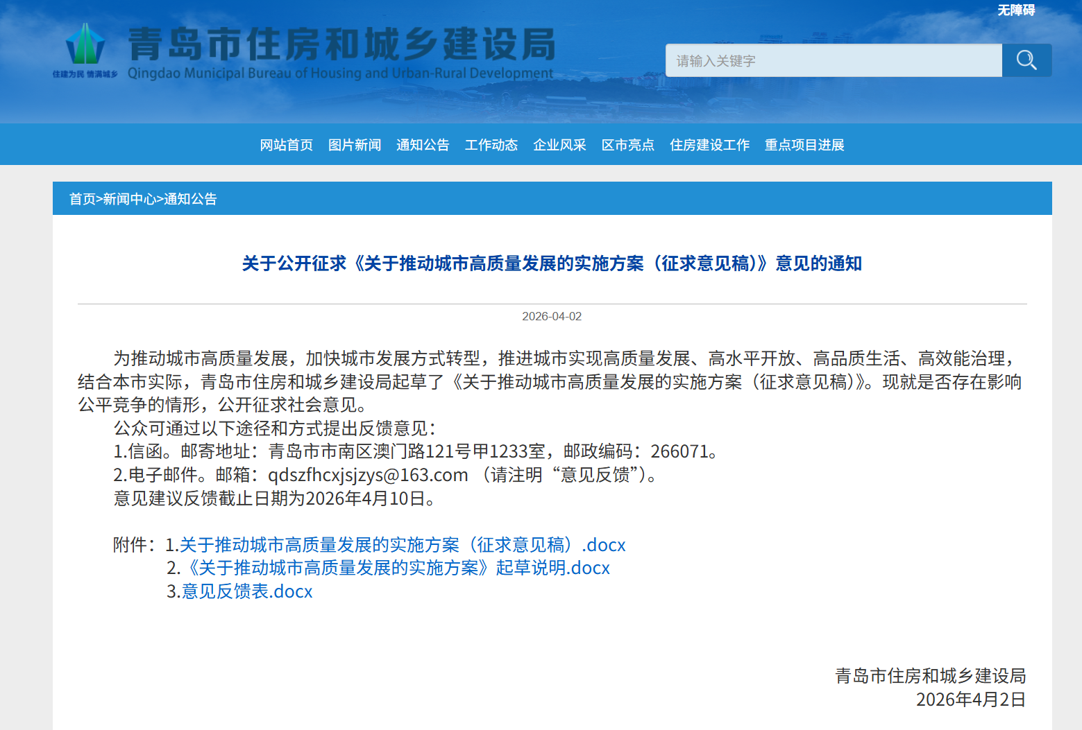 城市是现代化建设的重要载体、人民幸福生活的重要空间。如何让城市更宜居、更有温度、更具活力?日前,青岛市住房和城乡建设局起草的《关于推动城市高质量发展的实施方案(征求意见稿)》(以下简称《征求意见稿》)正式向社会公开征求意见。
