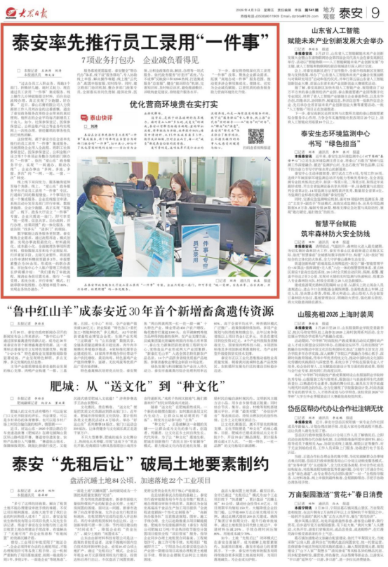 4月2日,3版要闻刊发《泰山脚下办起智能起重装备展》,报道2026泰山·羊流智能起重装备展览会盛况。详情请点击这里——