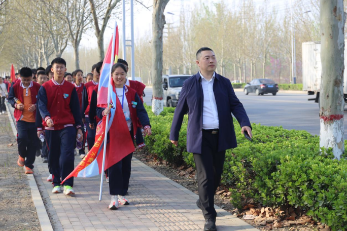一路上,同学们步伐坚定,互相鼓励,向着渤海革命老区纪念园进发。两路纵队整齐有序,班旗在晨风中飘扬。经过近两个小时的徒步,队伍成功抵达渤海革命老区纪念园。首师滨中学子们用双脚感受生命的律动,用汗水挥洒青春的热血,用坚持奏响前行的乐章。