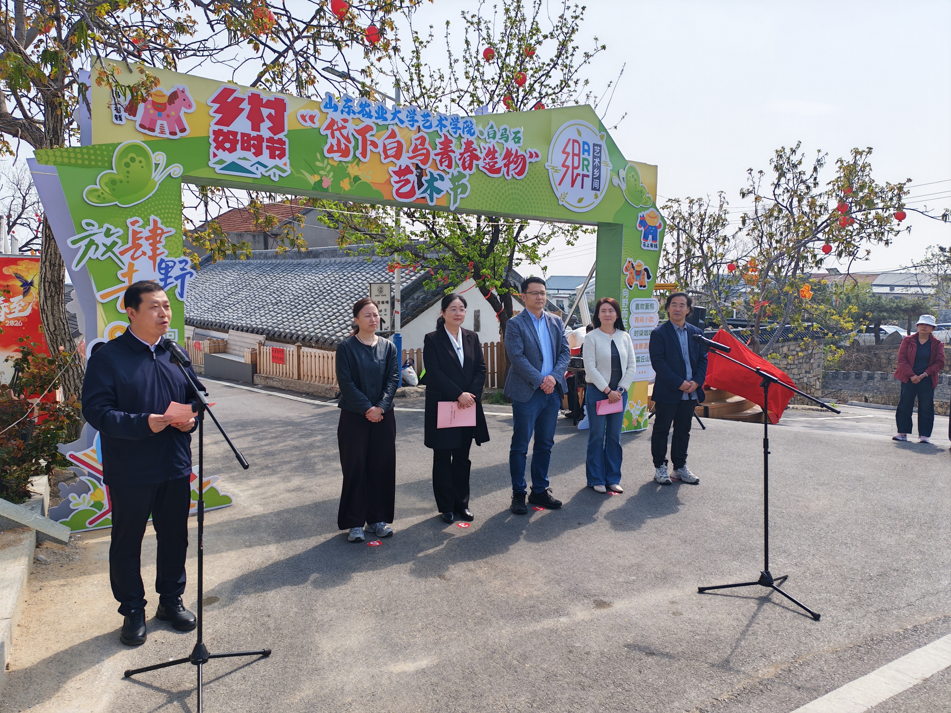 4月3日上午,由泰山区泰前街道与山东农业大学艺术学院联合打造的“岱下白马 青春造物”艺术节在白马石村隆重启幕。现场吸引了众多艺术学院师生、白马石村村民及游客市民积极参与。艺术与乡村的碰撞点燃了春日热情,欢声笑语在街巷间此起彼伏。据悉,艺术节将持续至4月底,以青春活力扮靓泰山春色。