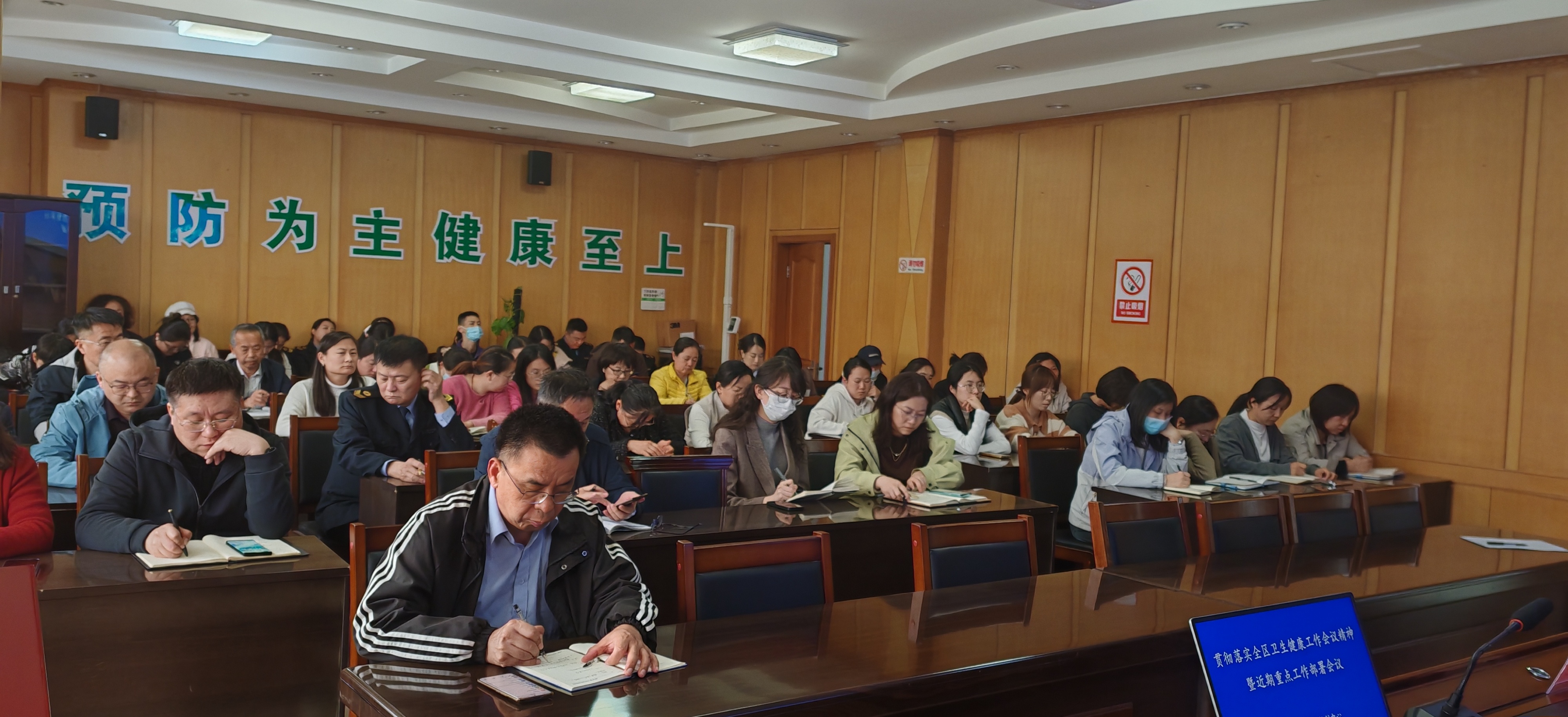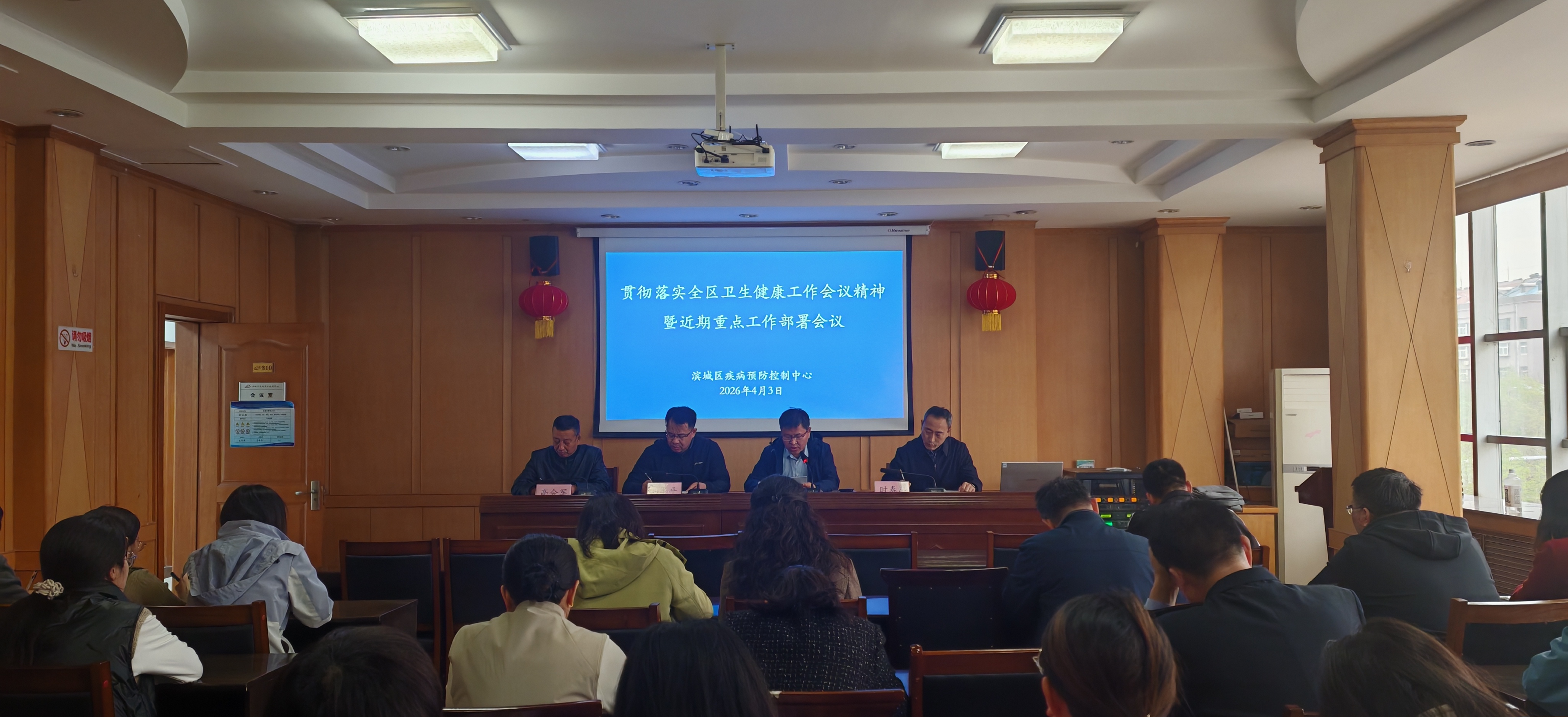 为深入学习贯彻全区卫生健康工作会议精神,精准谋划年度重点工作,4月3日,滨州市滨城区疾控中心组织召开2026年贯彻全区卫生健康工作会议精神暨近期重点工作部署会议。会议由中心主任李卫卫主持,党委书记刘军平作总结讲话并部署重点工作,全体职工参加会议。