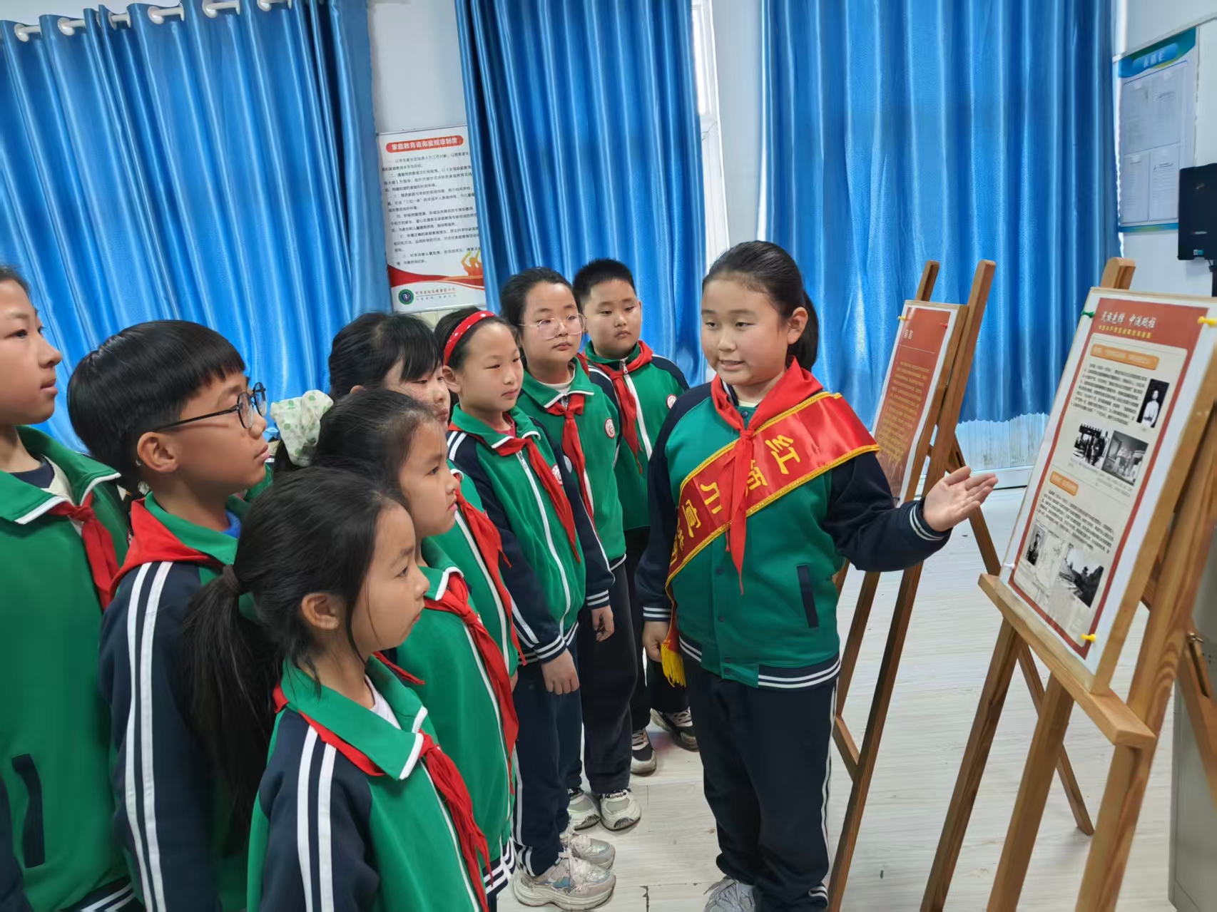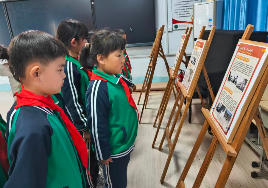 本次展览通过图文展板,集中展示了董存瑞、黄继光、赵一曼、杨靖宇等革命先烈的英雄事迹和珍贵历史图片,活动中,各班在班主任带领下有序参观,同学们认真阅读事迹、仔细观看图片,用心感悟。红领巾讲解员结合展板现场讲解英雄故事,引导学生铭记历史、珍惜幸福生活。