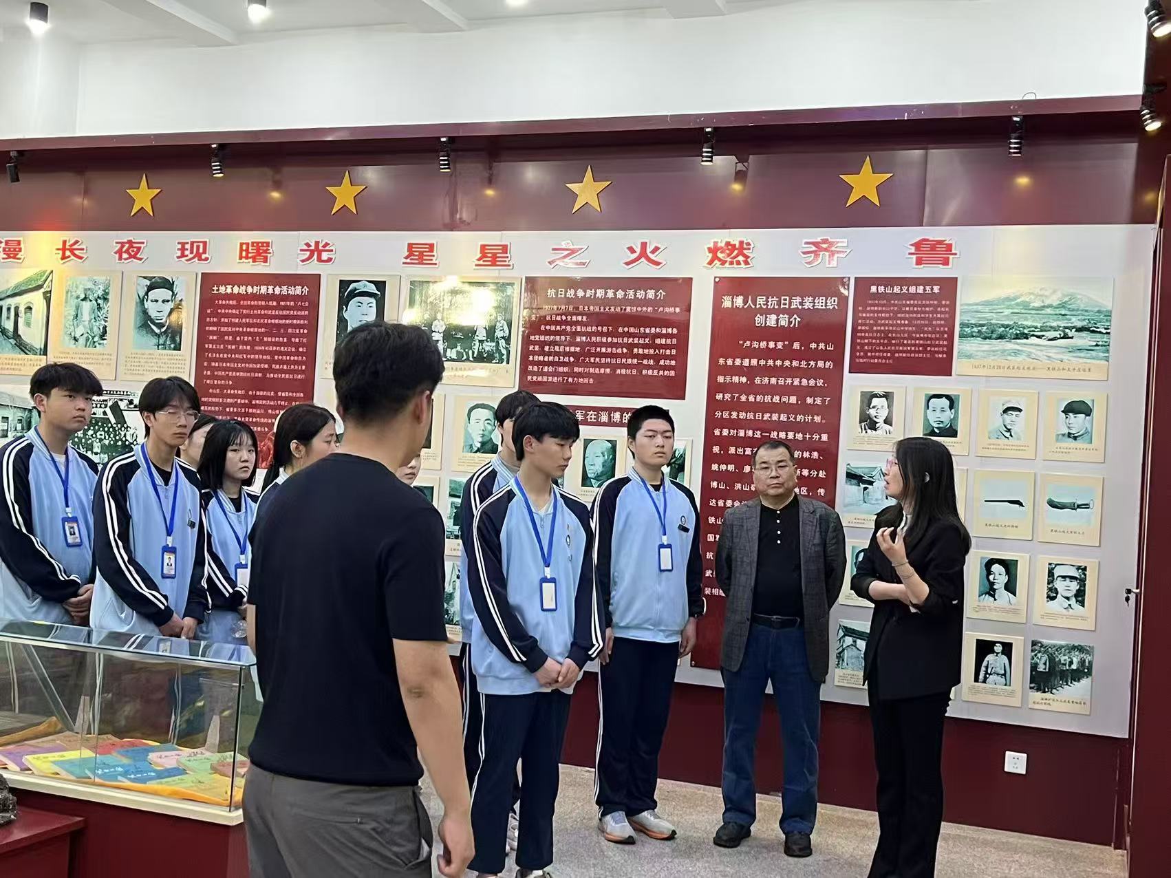 松柏苍翠,丰碑矗立。在庄严肃穆的烈士纪念碑前,师生代表整齐列队,向革命先烈敬献花篮、鞠躬默哀,并重温入党誓词。随后,师生们走进淄博革命烈士纪念馆,通过一件件珍贵文物、一幅幅历史照片、一段段影像资料,重温淄博地区在抗日战争、解放战争及社会主义建设时期的光辉历程。
