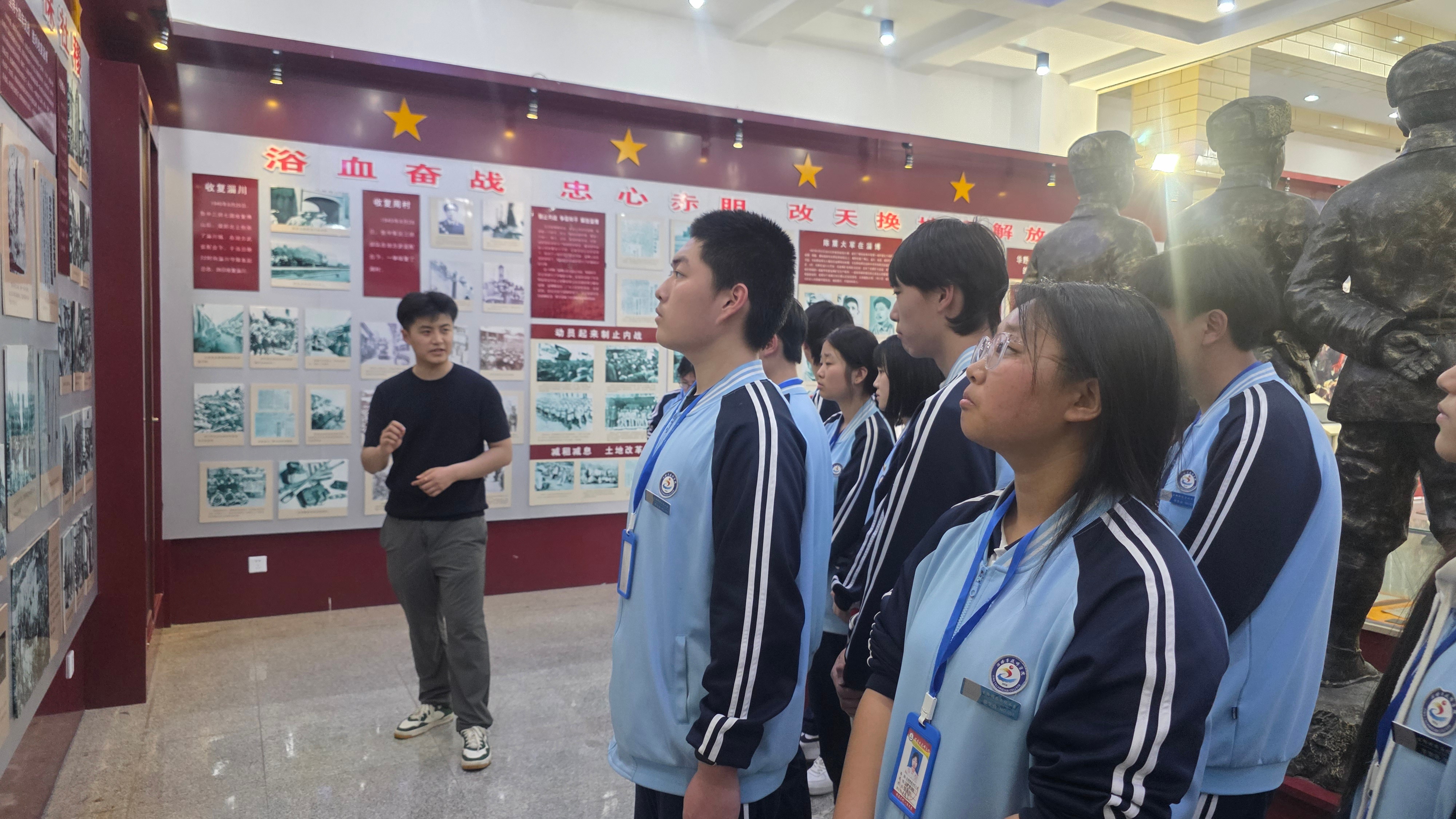 “这枚布满弹孔的军号,曾吹响过黑铁山起义的冲锋号角;这封泛黄的家书,字字句句都是革命者对信仰的坚守……”在思政课教师徐鑫鑫的引导下,师生们驻足凝视,深切感受革命先烈“一腔热血勤珍重,洒去犹能化碧涛”的壮志豪情。
