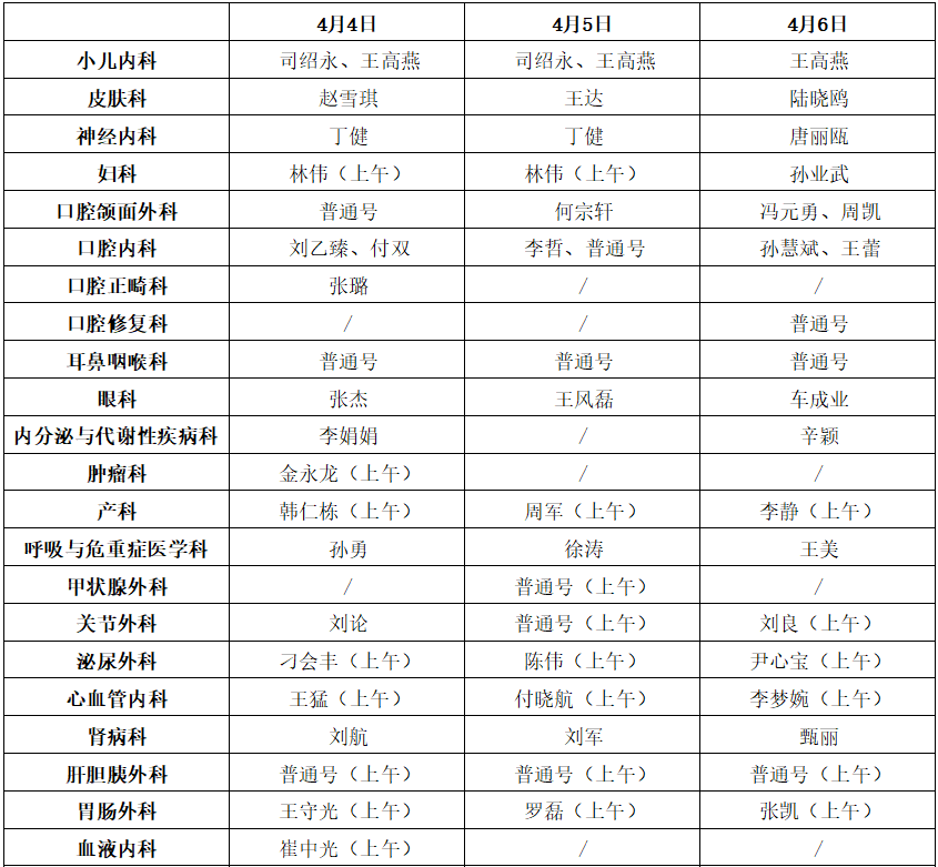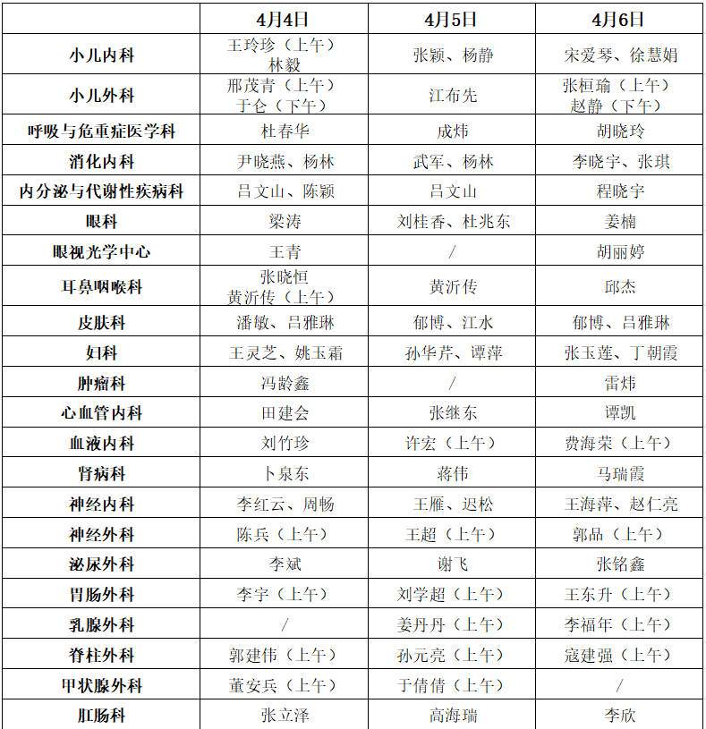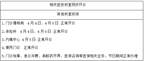3、便民门诊4月4日停诊,其他时间正常接诊。