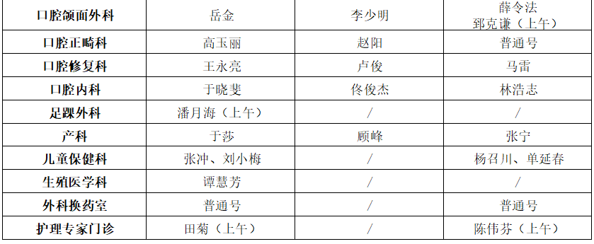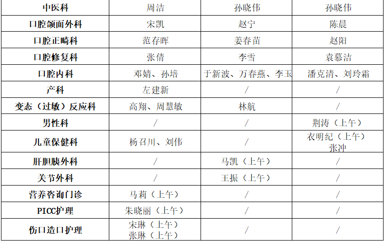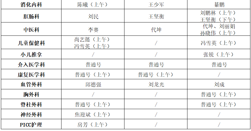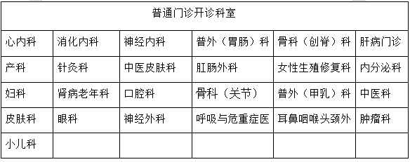 门诊开诊科室具体安排