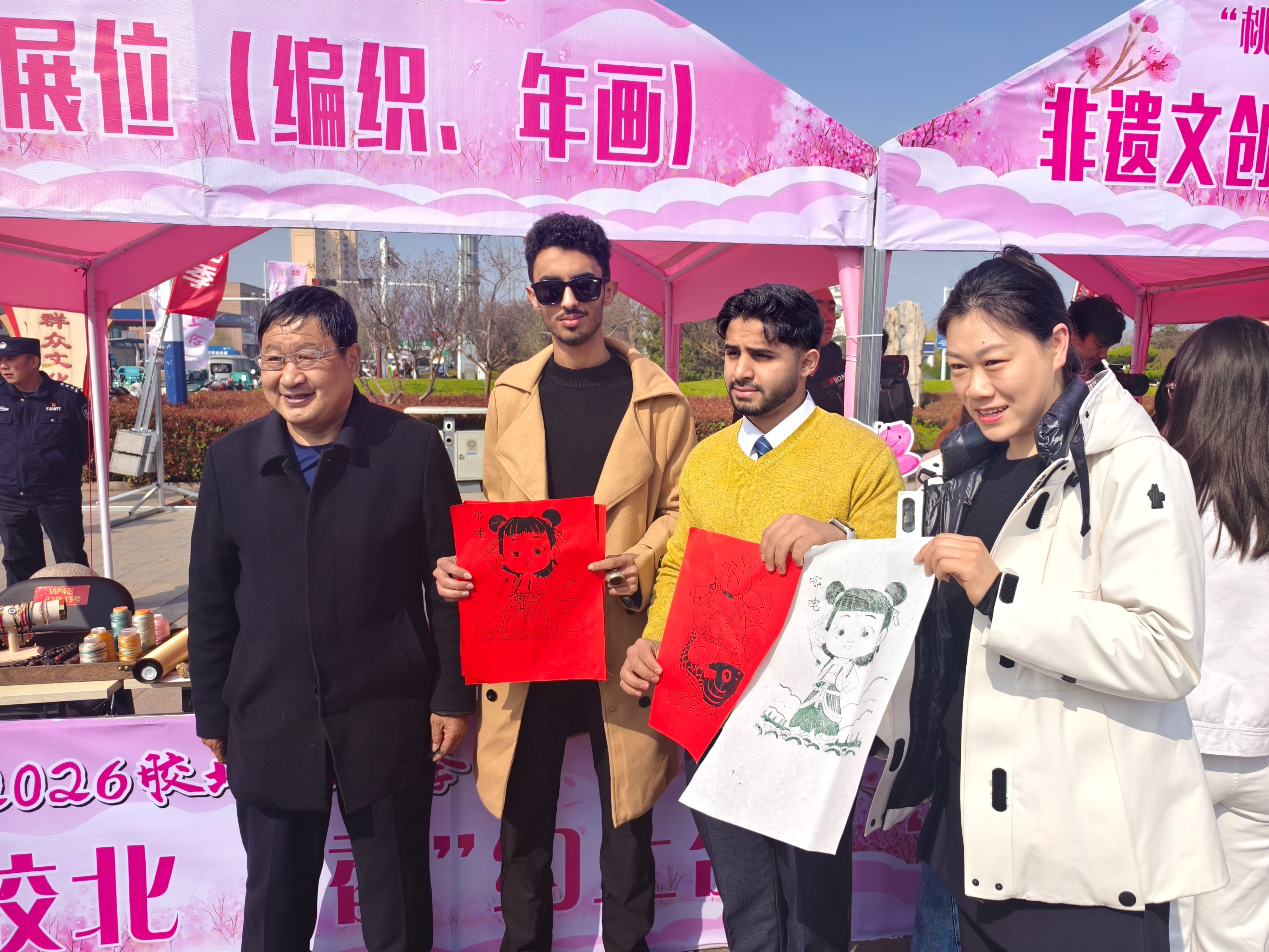在非遗和工业文创市集,剪纸、糖画等胶州本土非遗技艺匠心尽显;农特产品展销区,草莓、西红柿、桃花啤酒等新鲜果蔬、特色美食,带着乡土的芬芳扑面而来;留学生们体验非遗代表性项目,红纸在剪刀下翻转,一幅幅寓意吉祥的桃花图案跃然纸上,亲手留住了这春日美好。“看到了中国文化里剪纸和糖画的精致,非遗是留住生活之美的方式,不同文化背景的双手共剪一朵桃花,那份跨越差异的共情,正是文化传承最动人的力量。”来自蒙古国的景舒说。